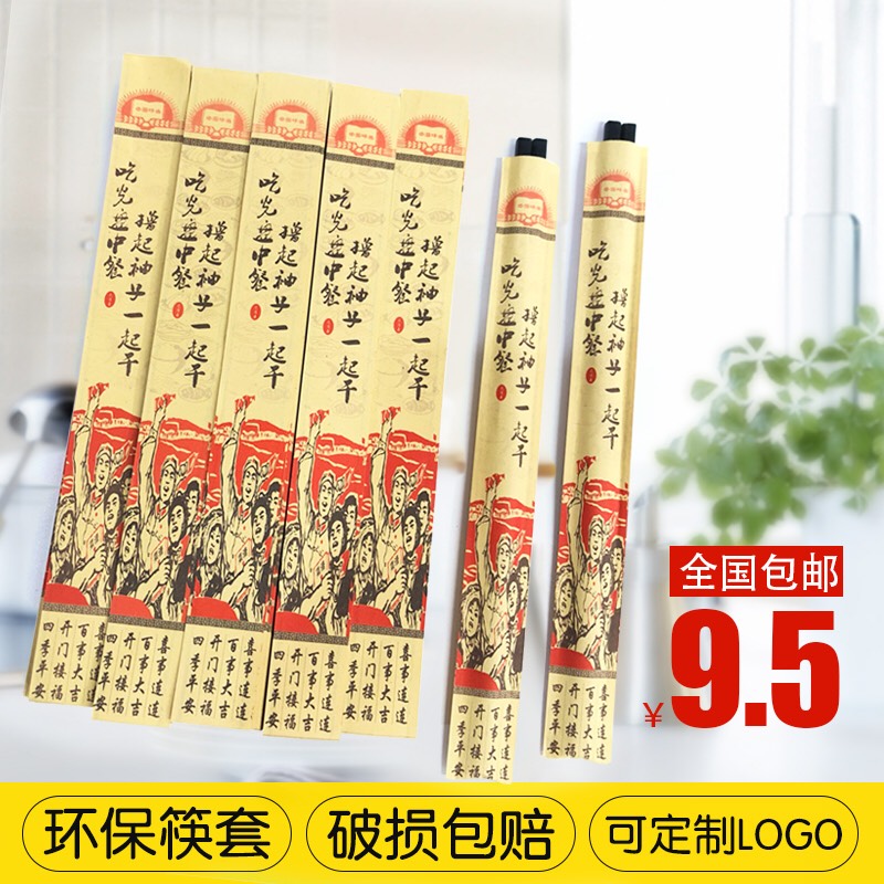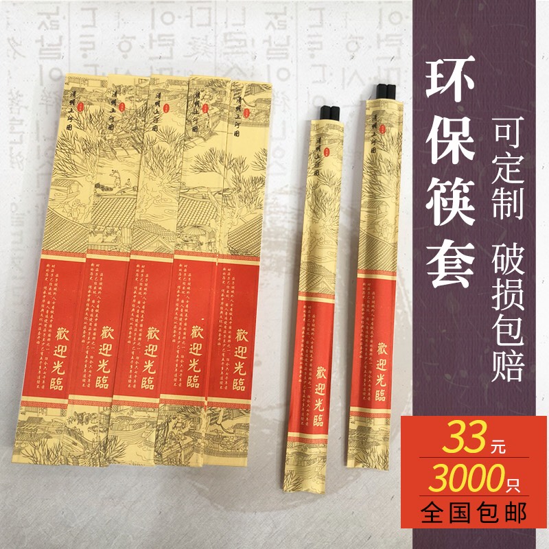 Disposable paper chopsticks set Qingming Shanghe map high-quality block packaging paper bag hotel restaurant hot pot fast bag bag