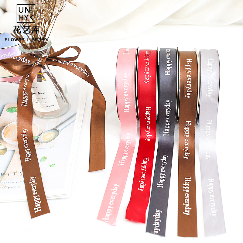 25mm New Ribbon Happy Day English Ribbon Gift Box Gift Butterfly Bow with High - grade Flower Strap
