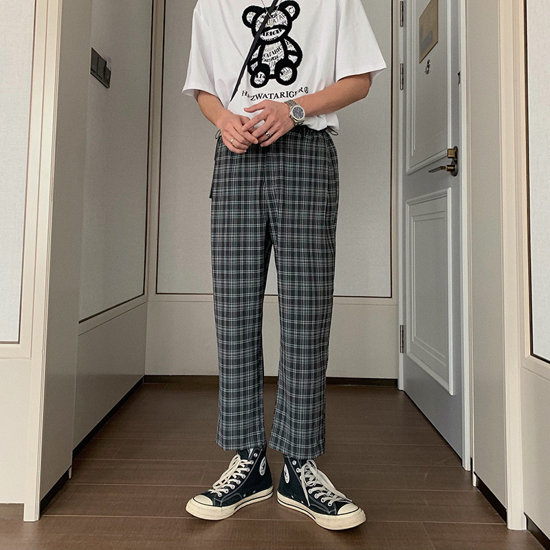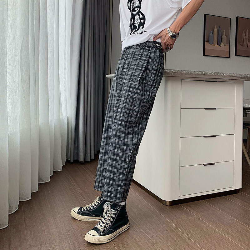 Hualun summer thin retro plaid straight casual pants men's all-over Korean trend ankle-length pants sub suit pants