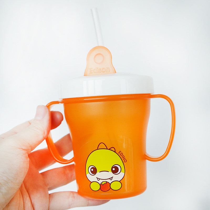South Korea Imports Edison Edison Baby Learn Drinking Cup Baby straw water glass with scale anti-leakage with handle-Taobao
