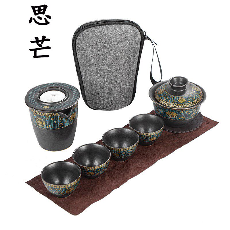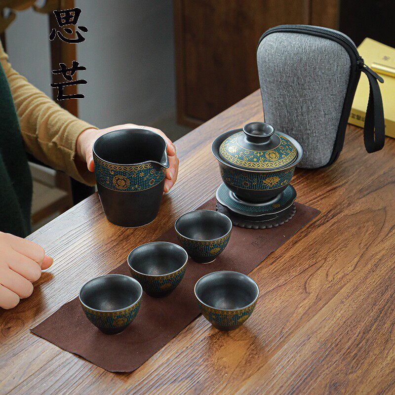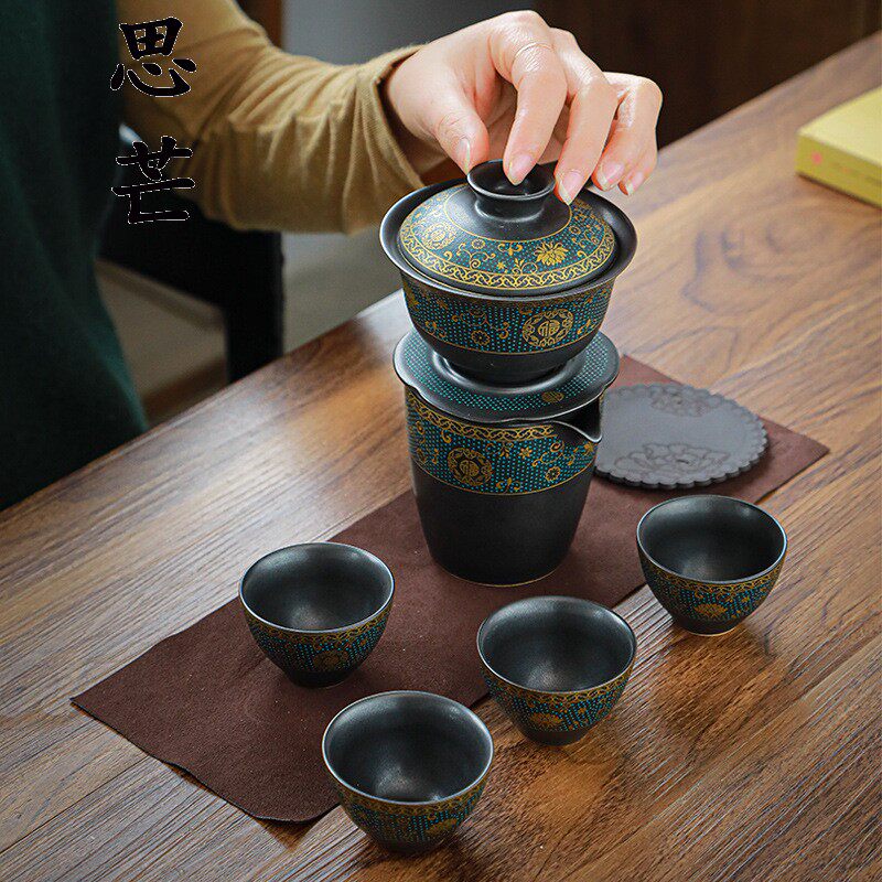 Outdoor tea toilet equipped with automatic tea set household living room small set lazy kung fu tea cup ceramic portable