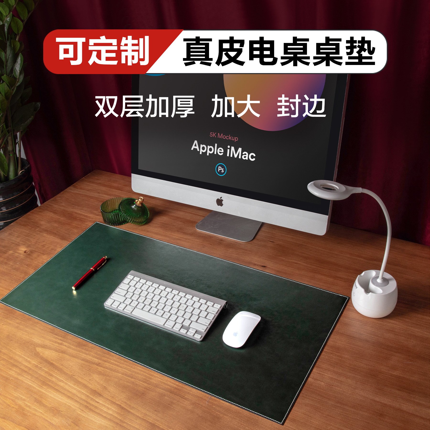 Wear-resistant leather computer desk pad oversized custom office desk pad large mouse pad leather edge non-slip