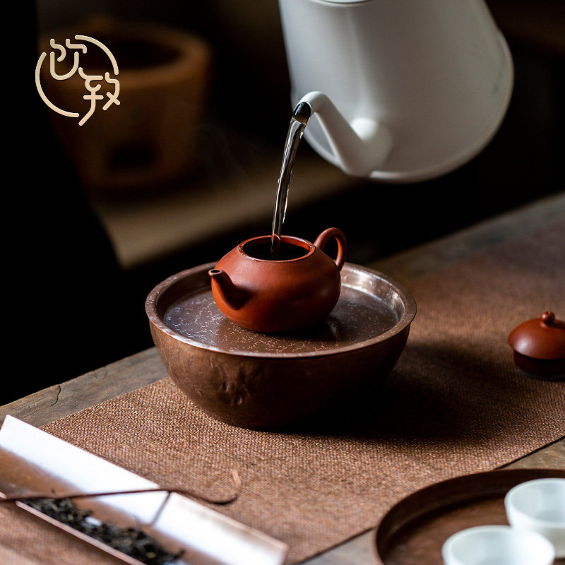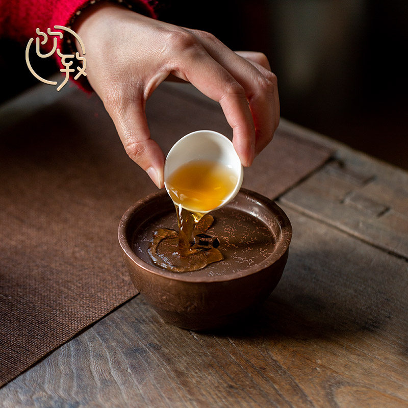 Drink to hand-made pure copper Jianshui retro copper tea slag bucket Japanese-style tea set accessories with lid water pot dry brewing table pot bearing