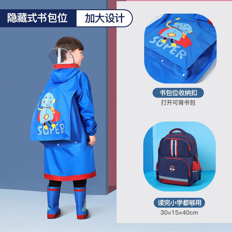 Children's raincoat boys 2022 new primary school students boys and girls girls big children go to school special rain cape with school bag