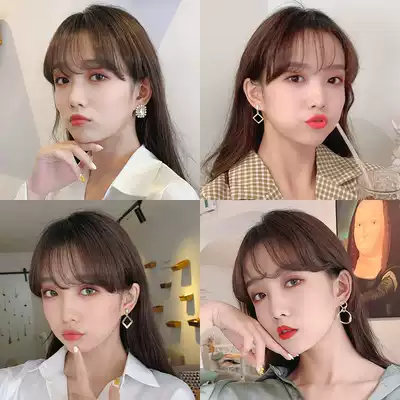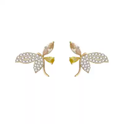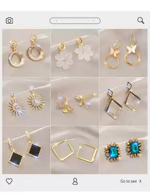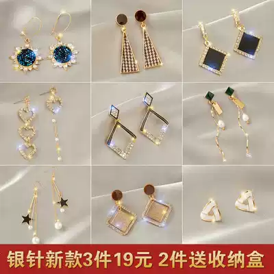 Black diamond earrings 925 silver needle hollow diamond earrings 925 silver needle brown red diamond earrings 925 silver needle 76★Triangle white bird grid 925 silver emerald green geometric three