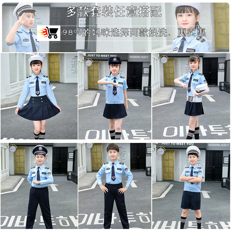 Children's police uniform suit small traffic police uniform police officer uniform role-playing small uniform boys and girls chorus costumes costumes