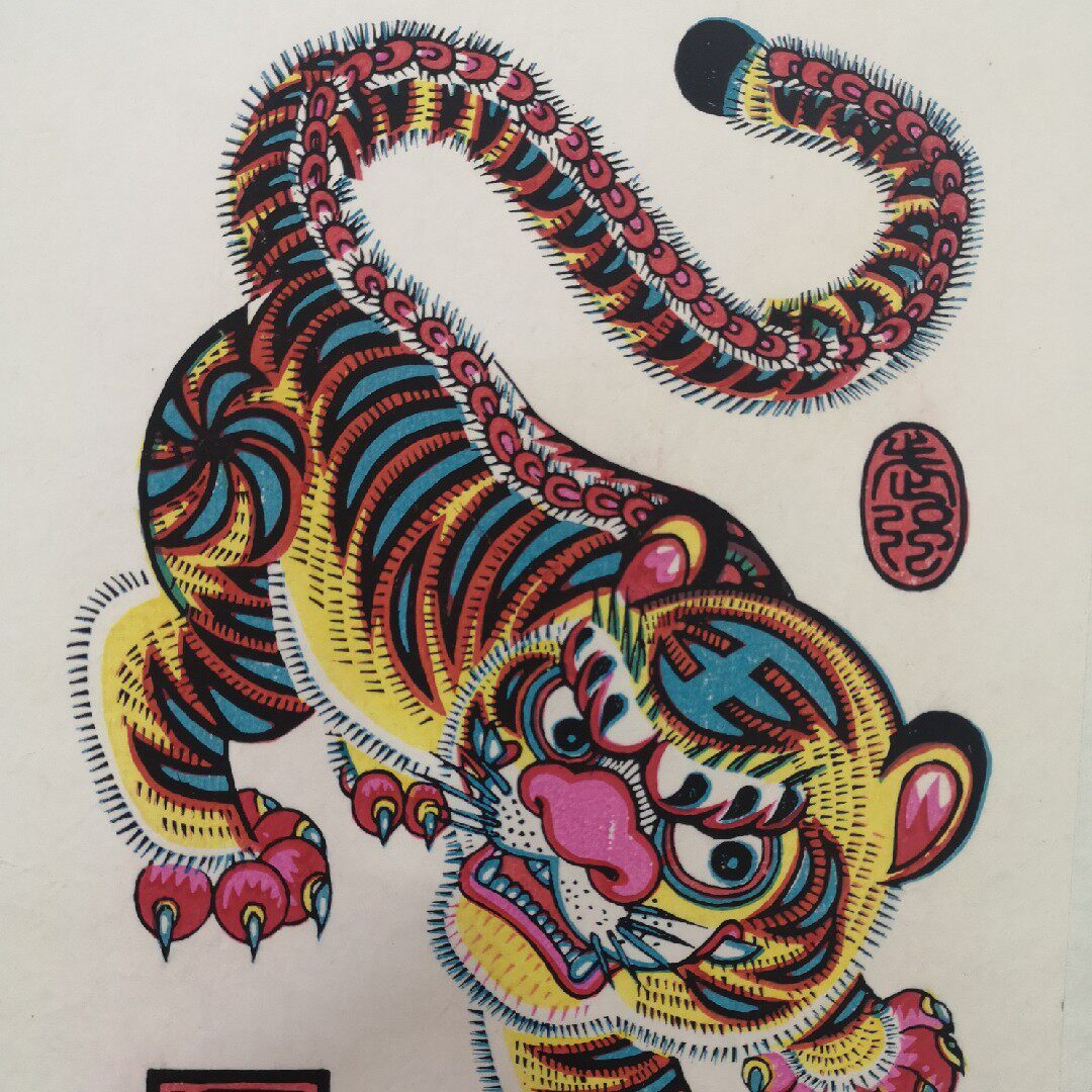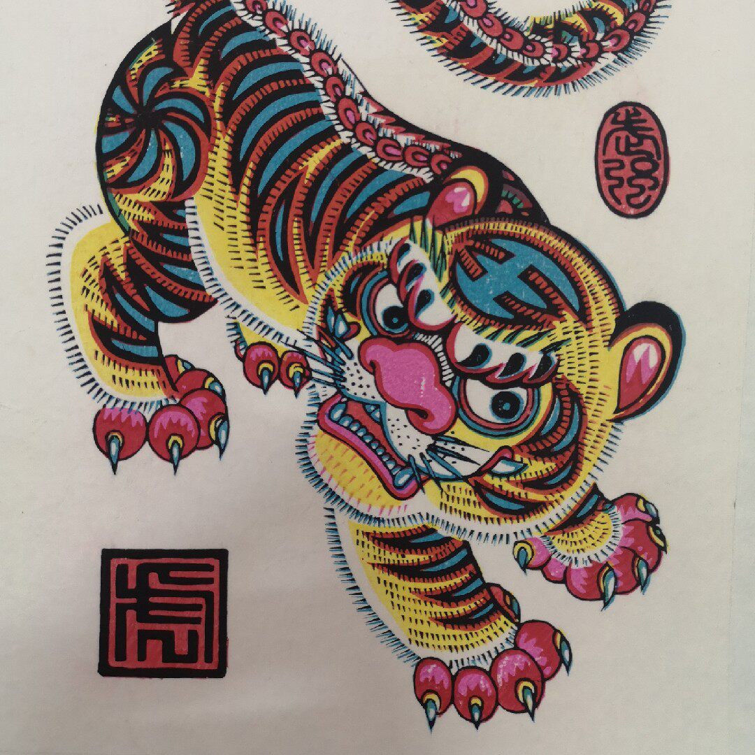 Wuqiang wood version year painting "Tiger" Non-heritage handmade year Painting Gift Collection size 18 by 25 cm-Taobao