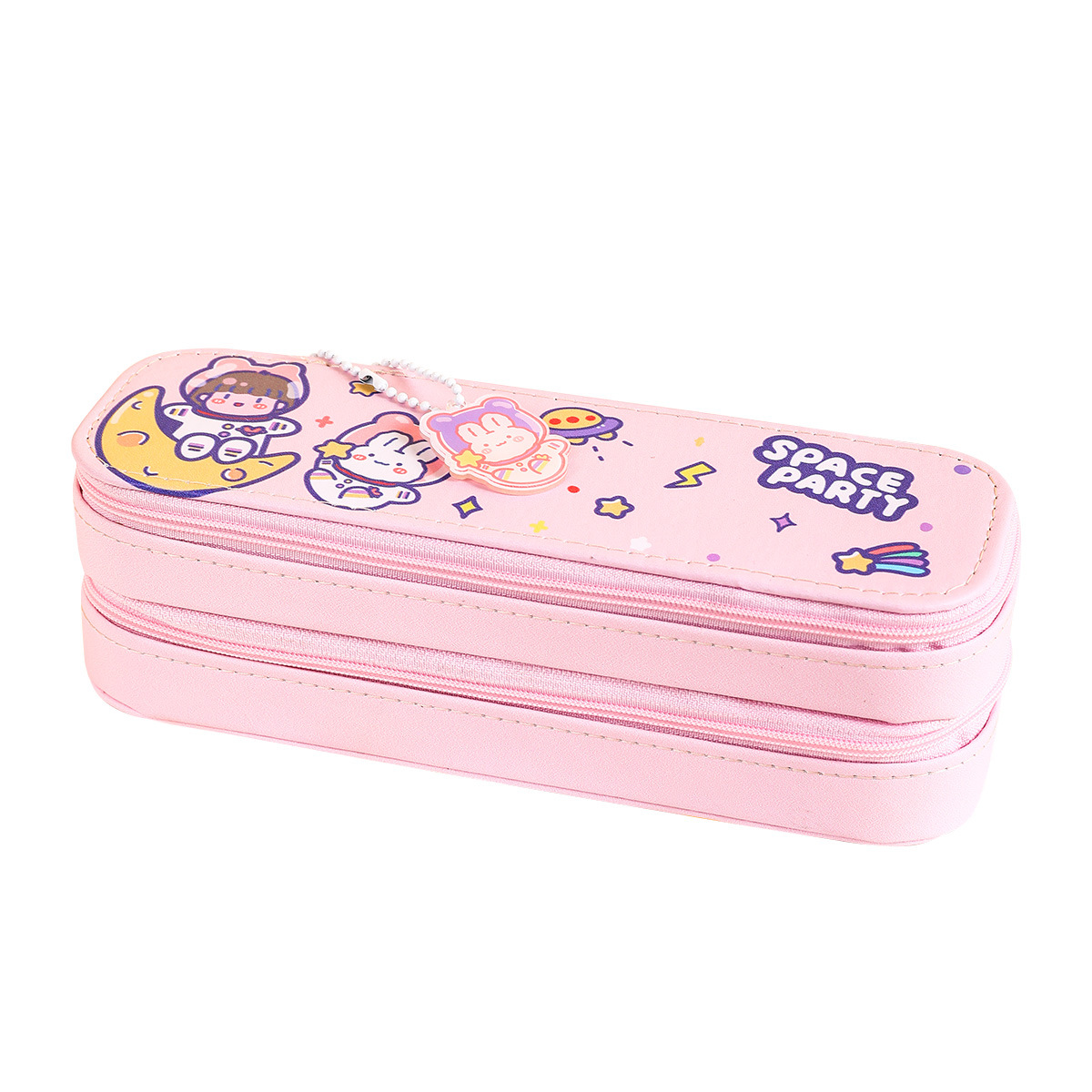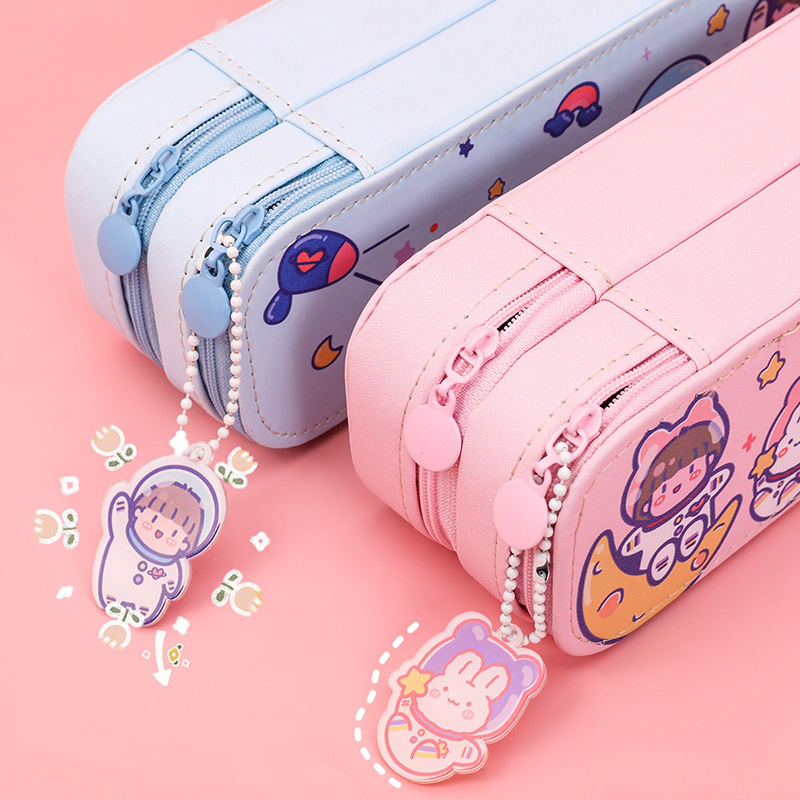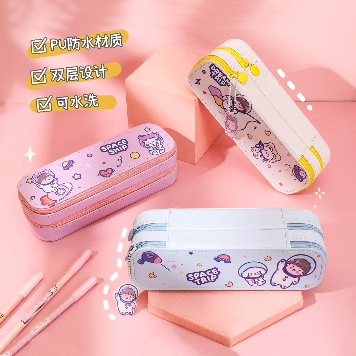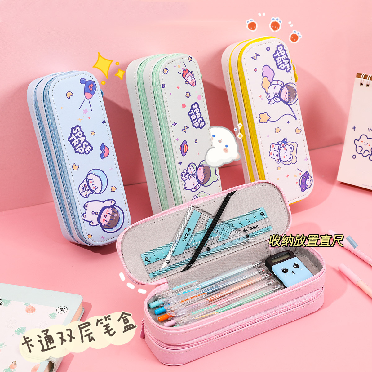 Versatile double layer pencil case large capacity canvas pu Korean version elementary school student pen bag girl heart ins junior high school creative men's stationery bag Korea day department small fresh and cute super cute net red lead pencil case