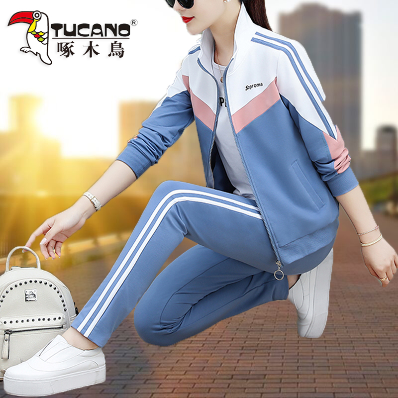Woodpecker sports suit ladies 2022 spring and autumn new casual loose fashion foreign style mother three-piece suit