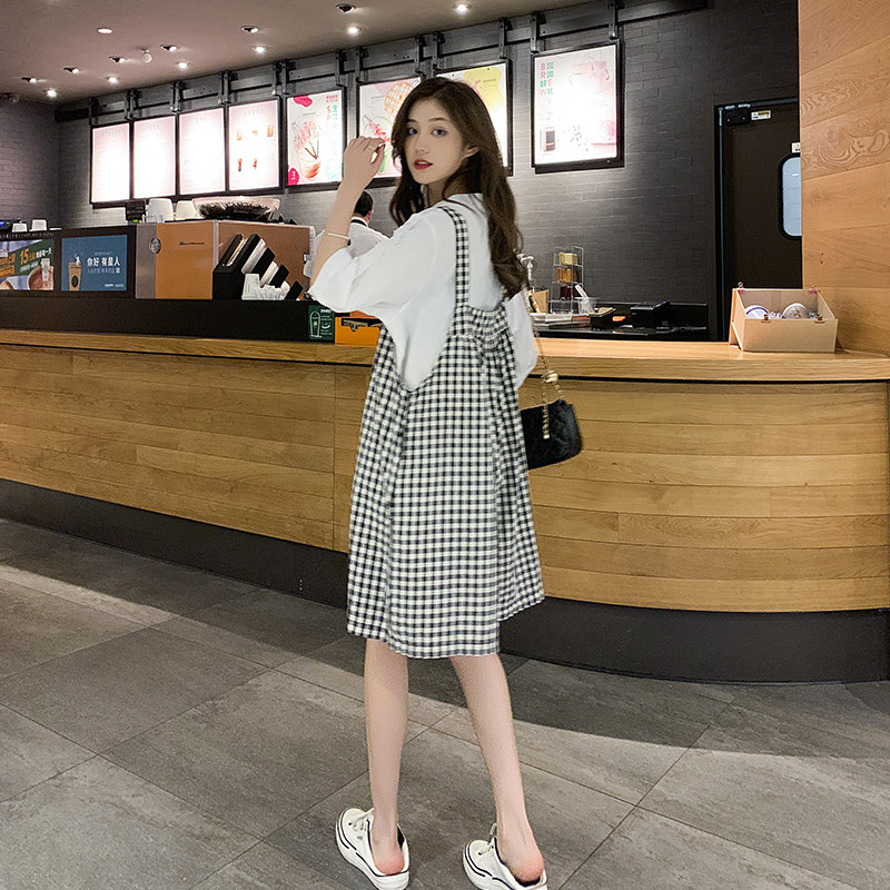 Pregnant Woman Pants Shorts Checkered Baby Bag Pants Woman Summer Loose small subthin section 7 Pants Suit Two Sets Summer Clothing