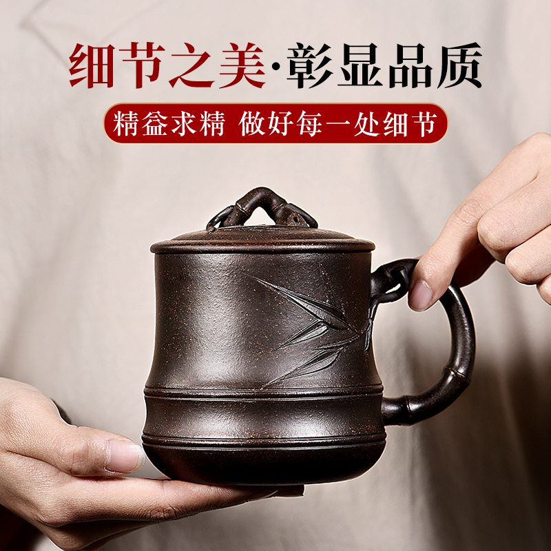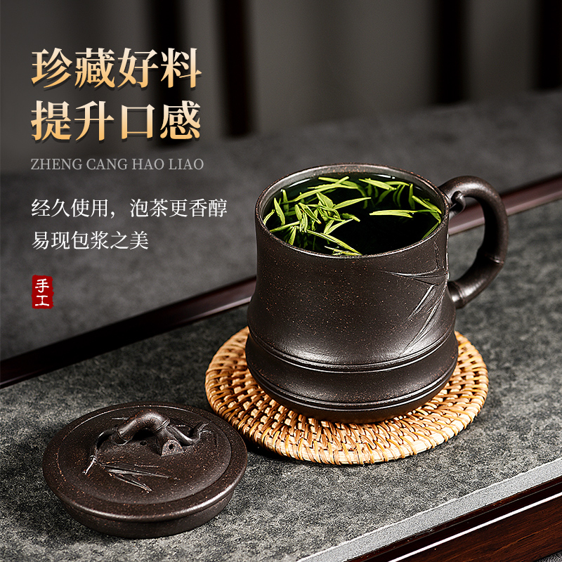 Yixing Purple Sand Cup Original Mine Black Gold Sand All-hand Upscale Starry Sky Monarch Bamboo Office Men's Tea Cup Tea Cup