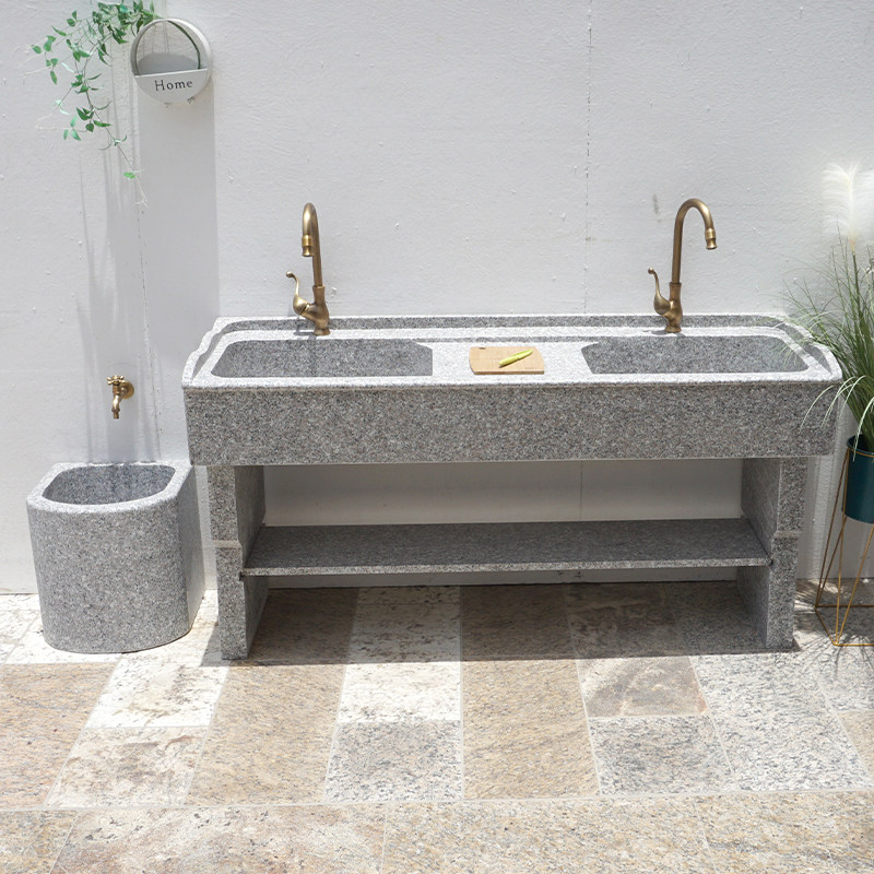 Stone laundry pool basin with washboard overall granite marble sink household outdoor courtyard balcony home
