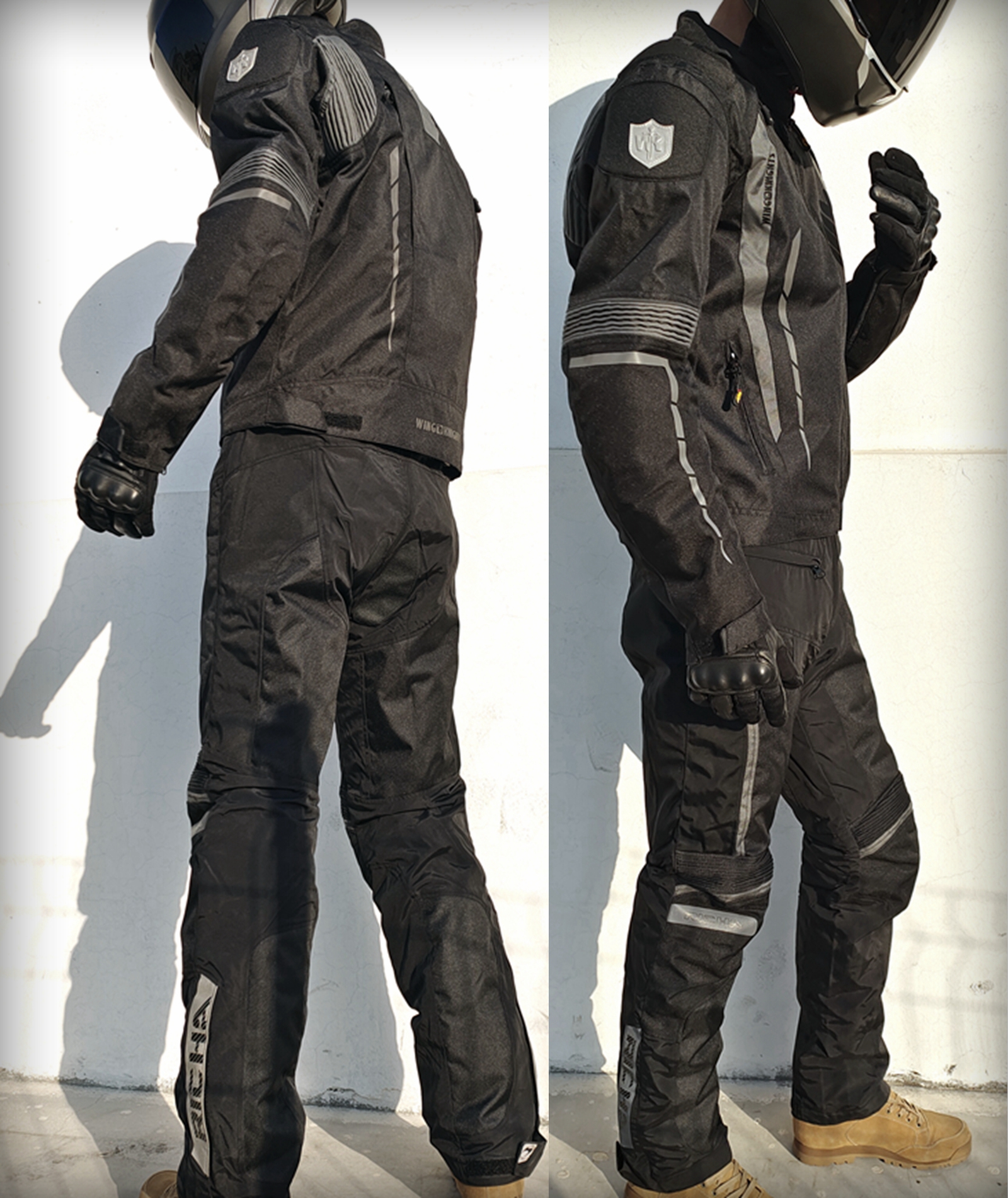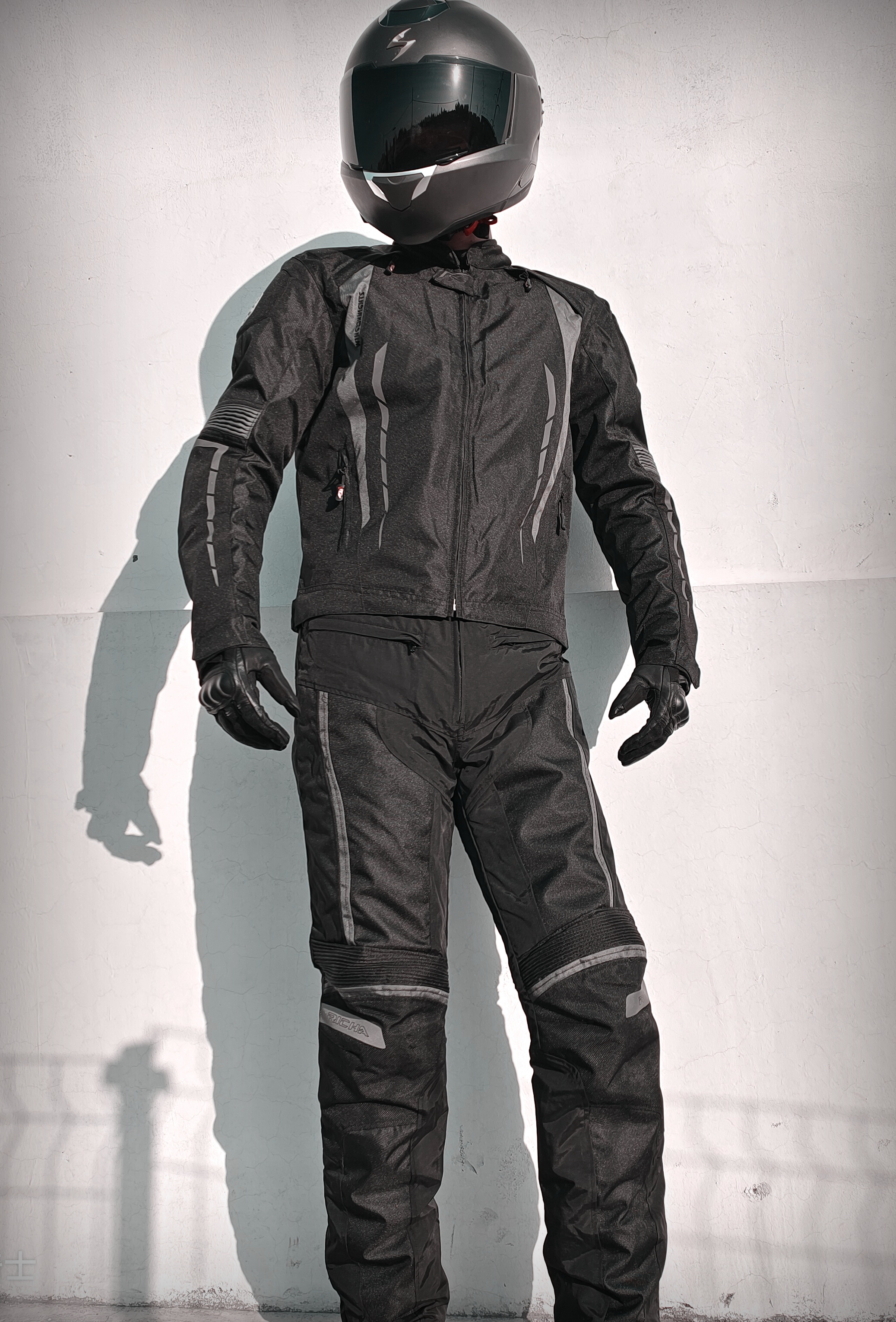 Lightning 1 Jacket - Black Grey Cotton Bile Full Rainproof R Brand EVO Pants - Black Grey Cotton Bile Full Rainproof DSO Protective Gear 5 Piece Sets CE1 Grade PU Material Beelte Memory Knee Pads CE2