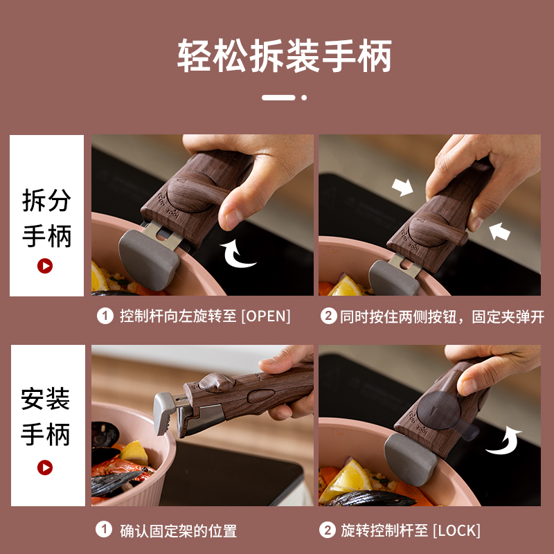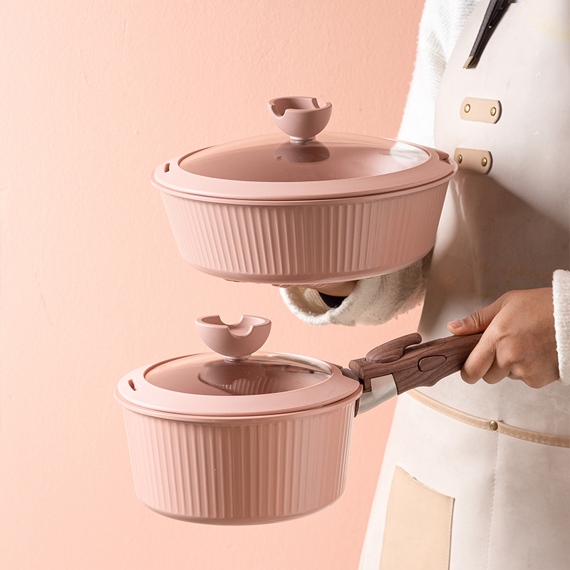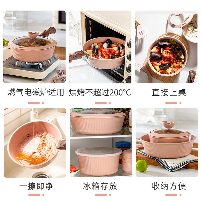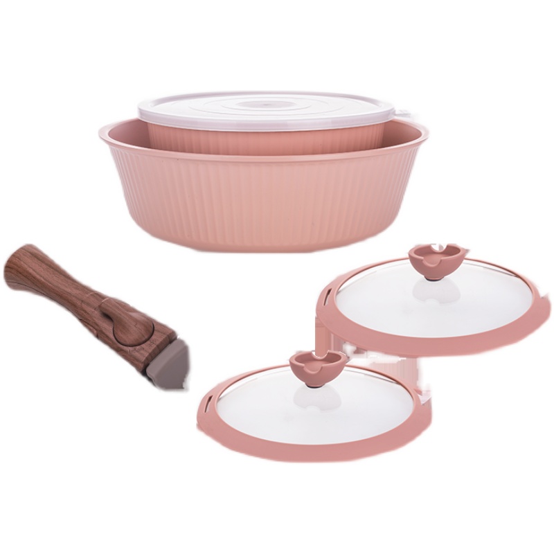 Detachable milk pan 3-piece set Pink detachable frying pan 3-piece set Pink detachable 6-piece set Pink detachable 6-piece set Pink Steamer detachable 6-piece set Pink Steamer Heat conduction plate