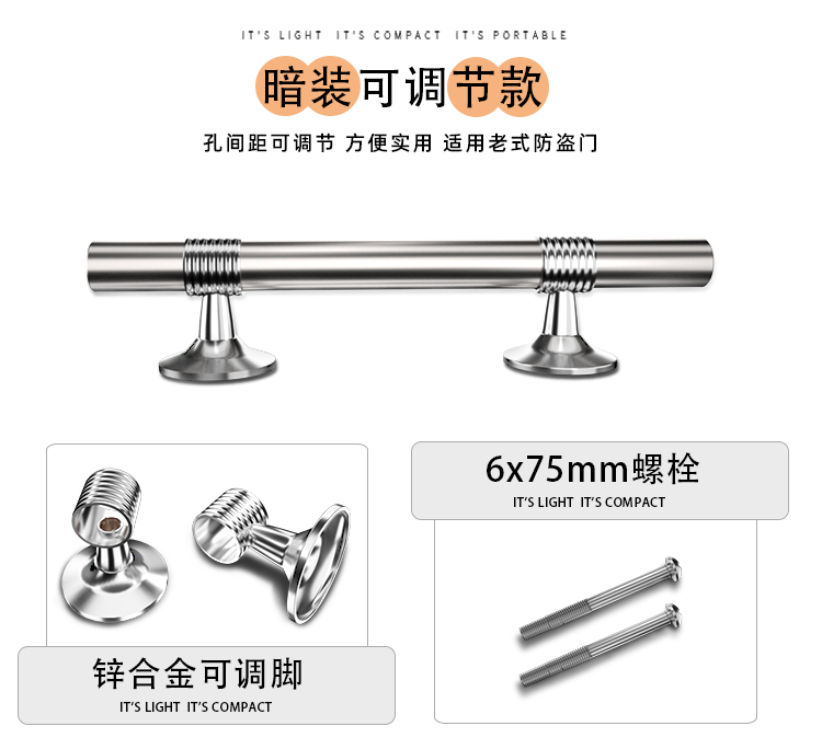 Adjustable handle hole distance Adjustable handle Stainless steel door Aluminum alloy door Iron door unit anti-theft door handle
