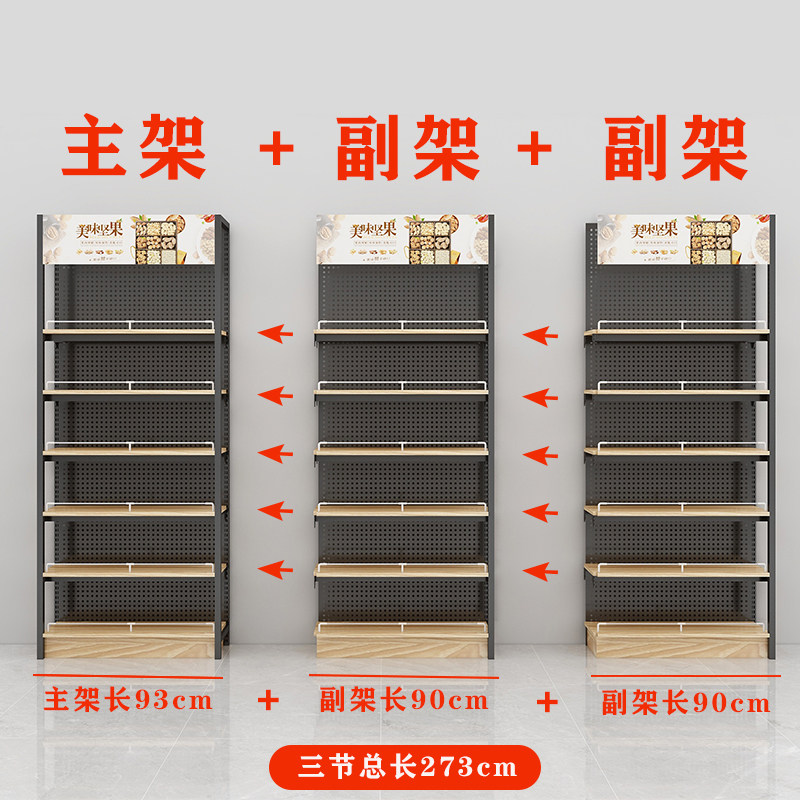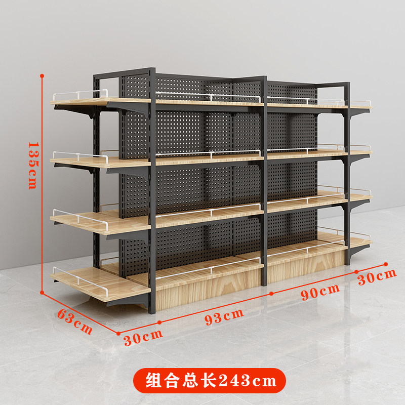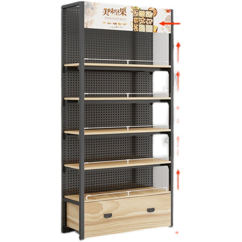 Adjustable Four Columns Steel Wood Super Market Shelving Snack Shelf Convenience Store Small Selling Multifunction Multilayer Shelving