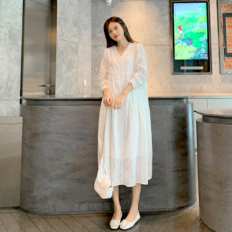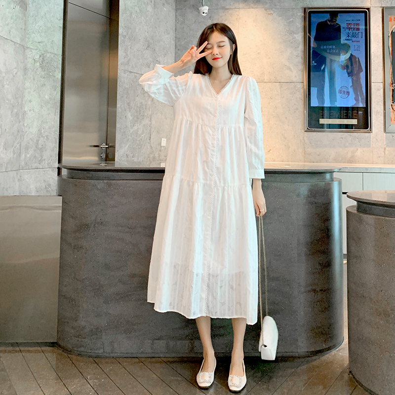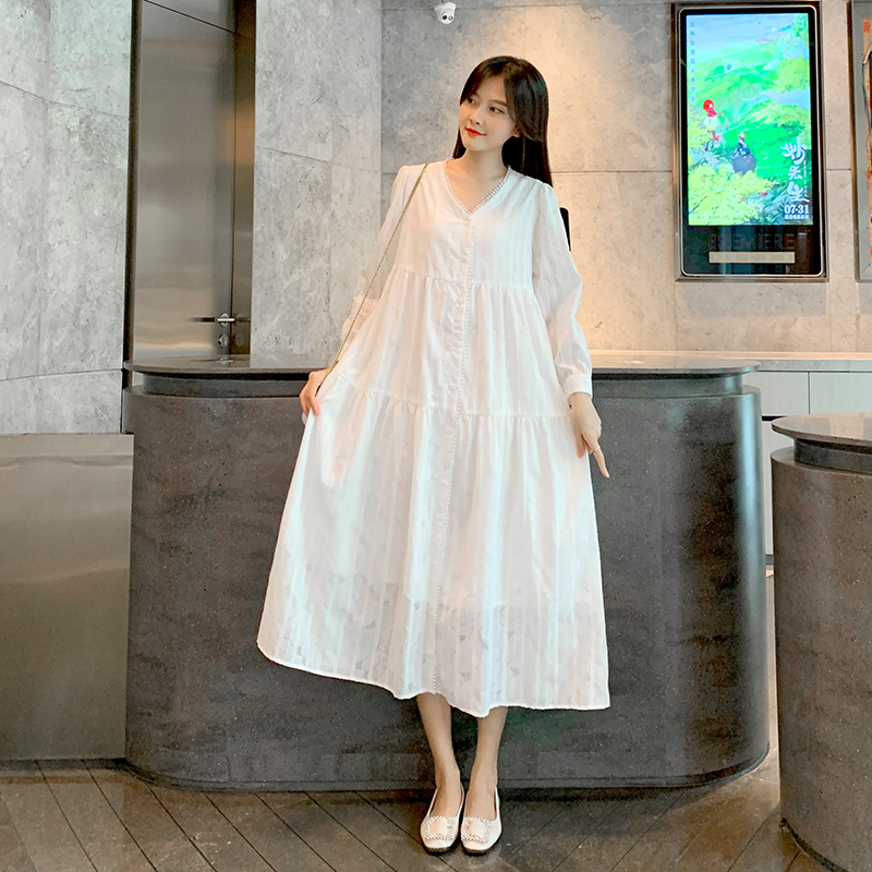 Pregnant women autumn dress 2021 autumn long cotton shirt foreign style Net Red fashion tide autumn skirt hot mom