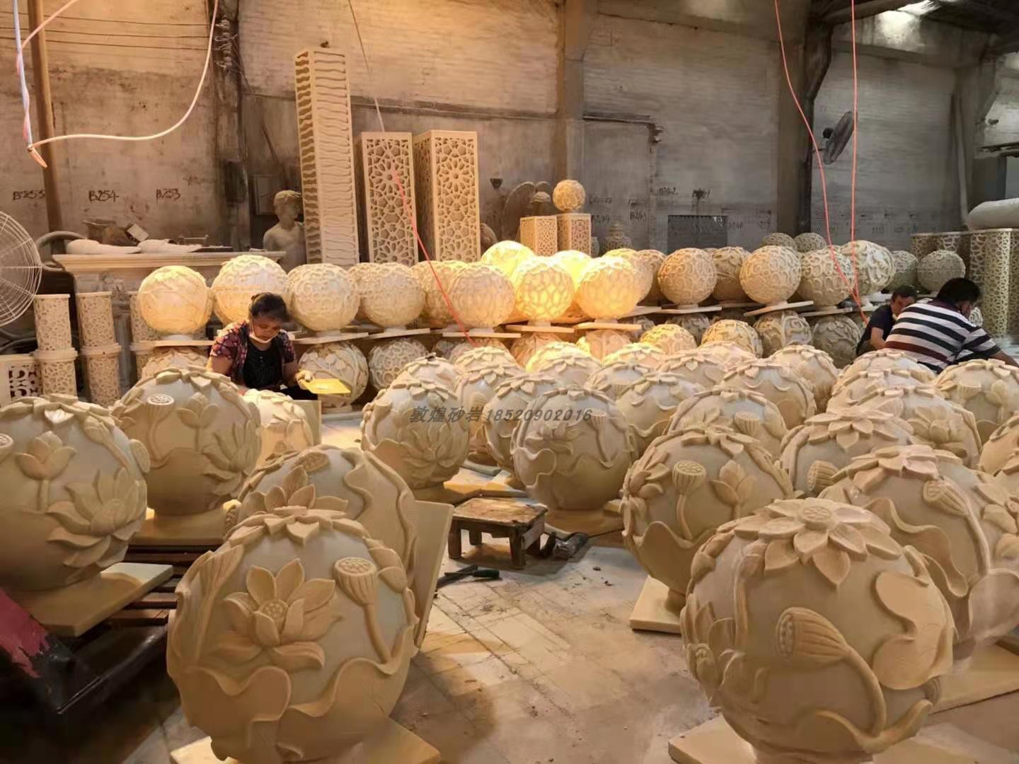 Sandstone Light Transmission Lamp Lotus Art Lamp Ball Round Carved Garden Forest Landscape Villa Courtyard Decoration Background Wall Solid Sculptures