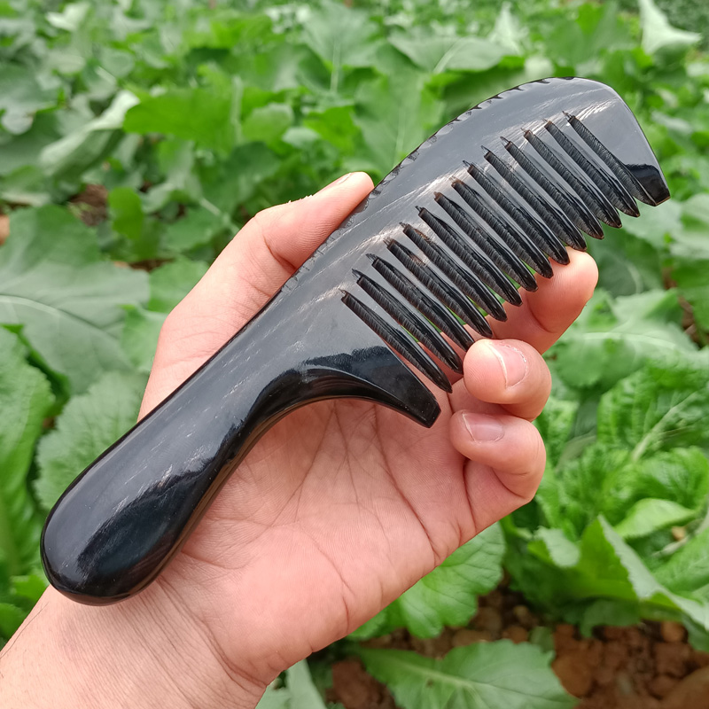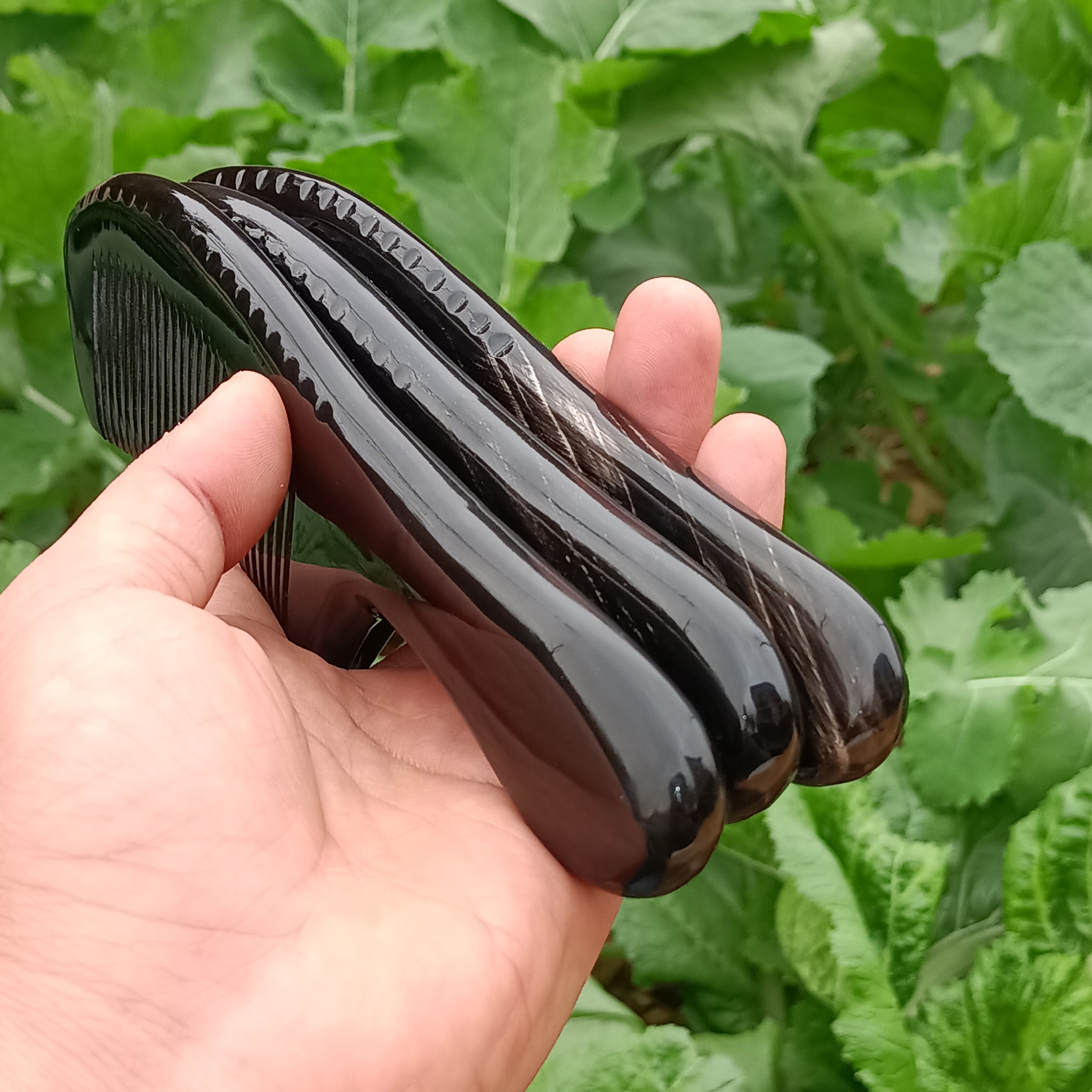 Natural buffalo horn comb thickened massage comb dense tooth wide tooth comb straight hair comb ladies free lettering