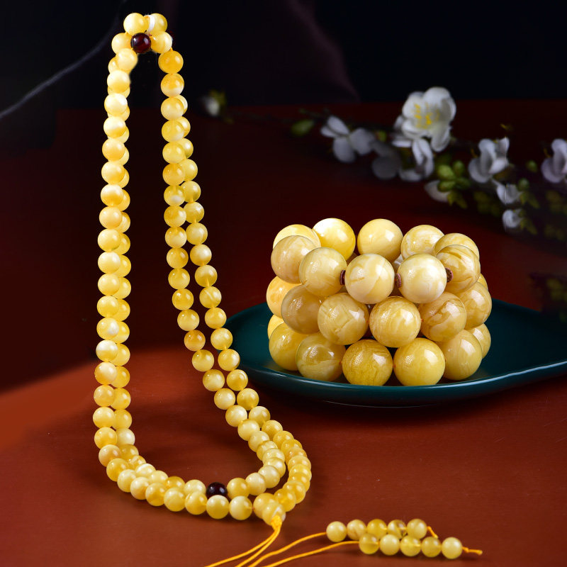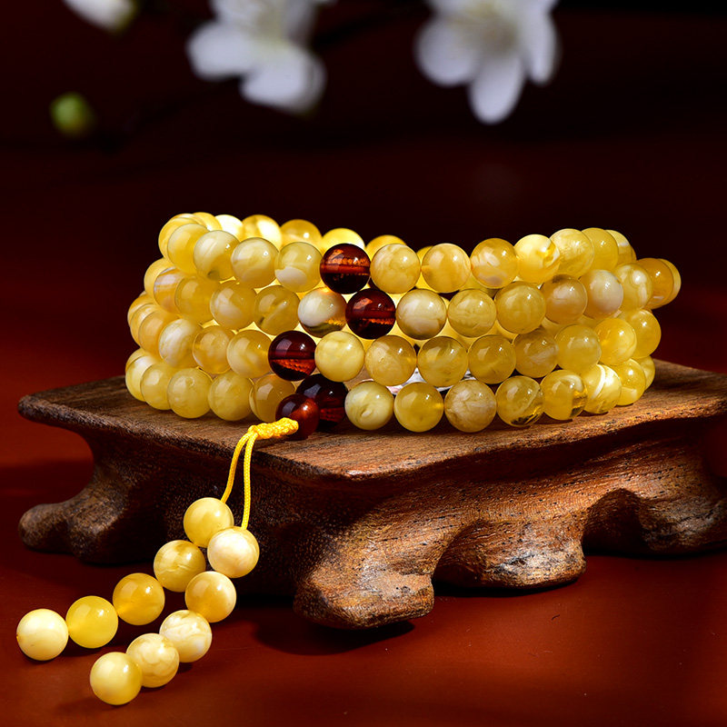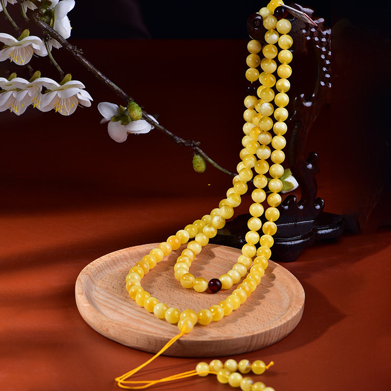 Zhengya amber Russian honey wax handstring multiple rings of Buddha pearl and Russia Chicken Oil Yellow Pure Natural and Play Handmade