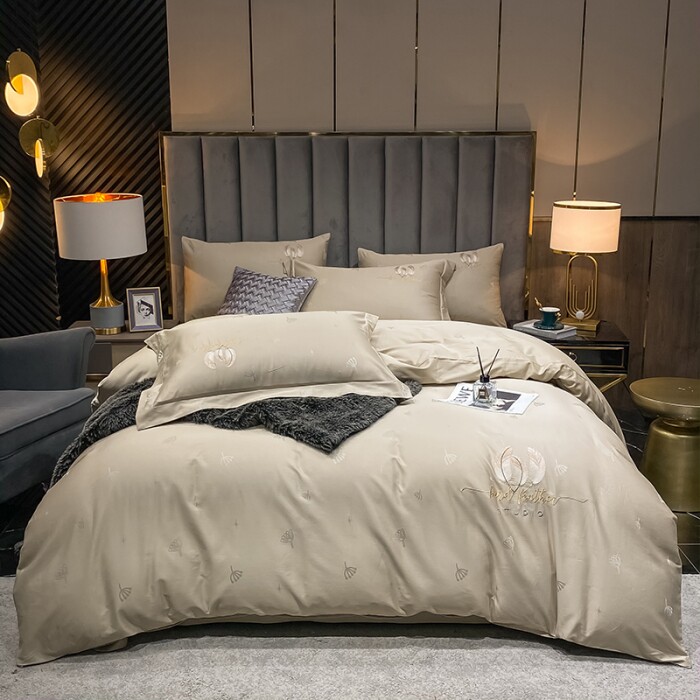 Four pieces of embroidery long - fluff cotton beds on 100 beds of light luxury cotton beds are suited for bedding