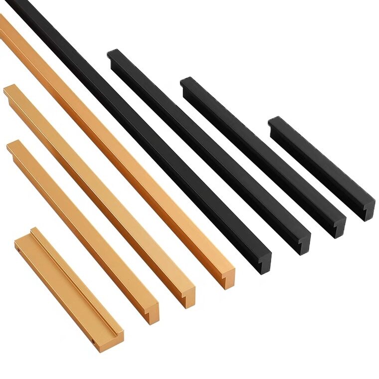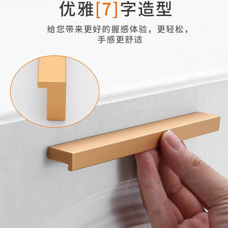 Wardrobe handle modern minimalist 7-shaped long cabinet door handle black Nordic overall cabinet drawer extended door handle
