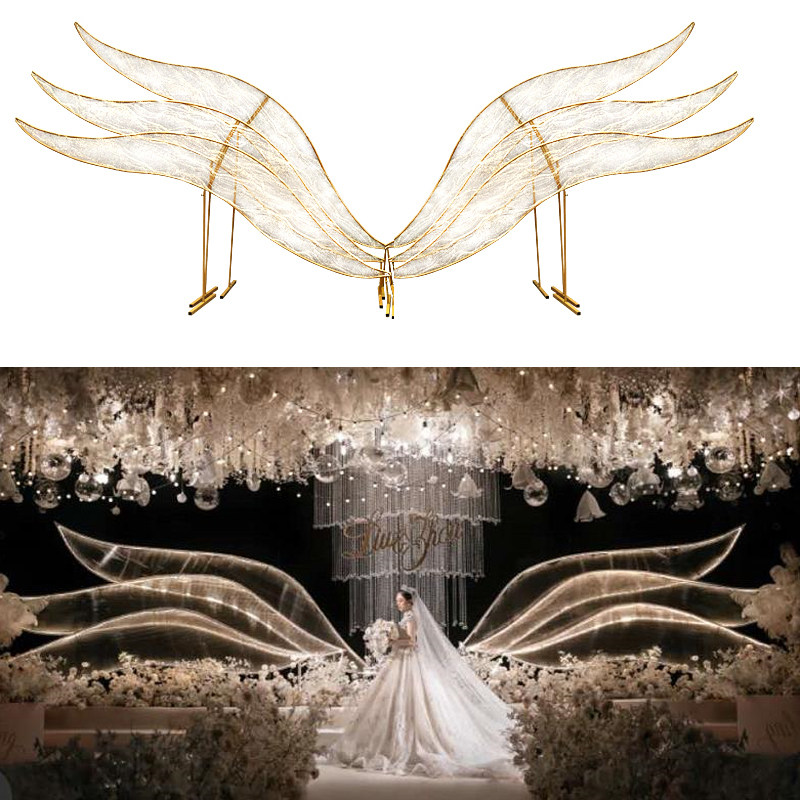 New wedding stage Prop Wedding Stage Arrangement Large Iron Art Screen Angel Wings Background Decorative T Pendulum Pieces