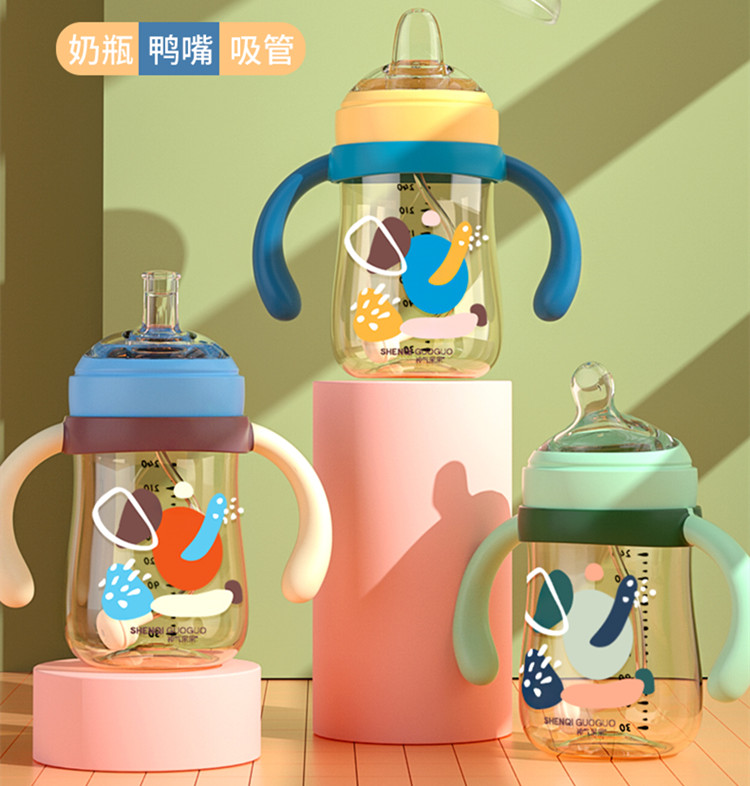 Protective Conn Spirits Fruits Fat Child Milk Bottle Eccentric 15 ° Pacifier Duckbill Suction Mouth Wide Mouth Training Cup Straw Accessories-Taobao