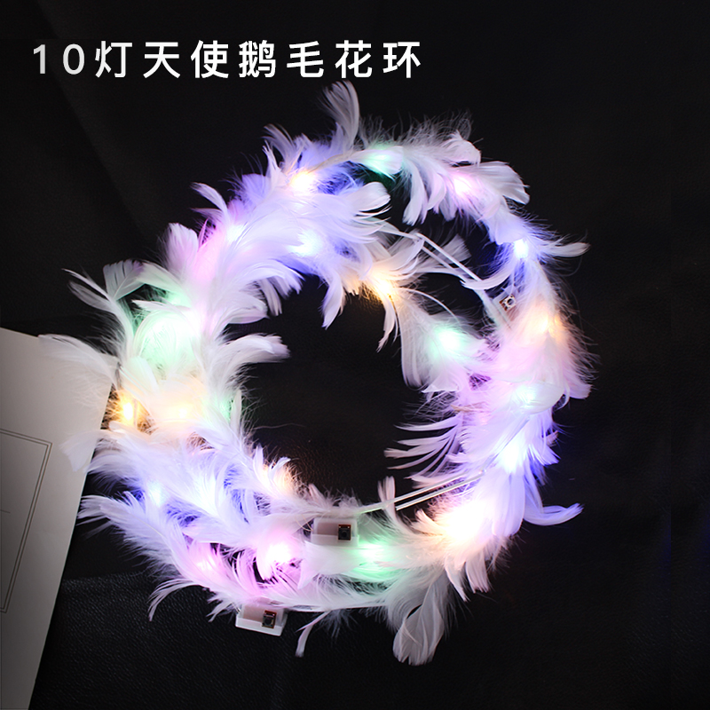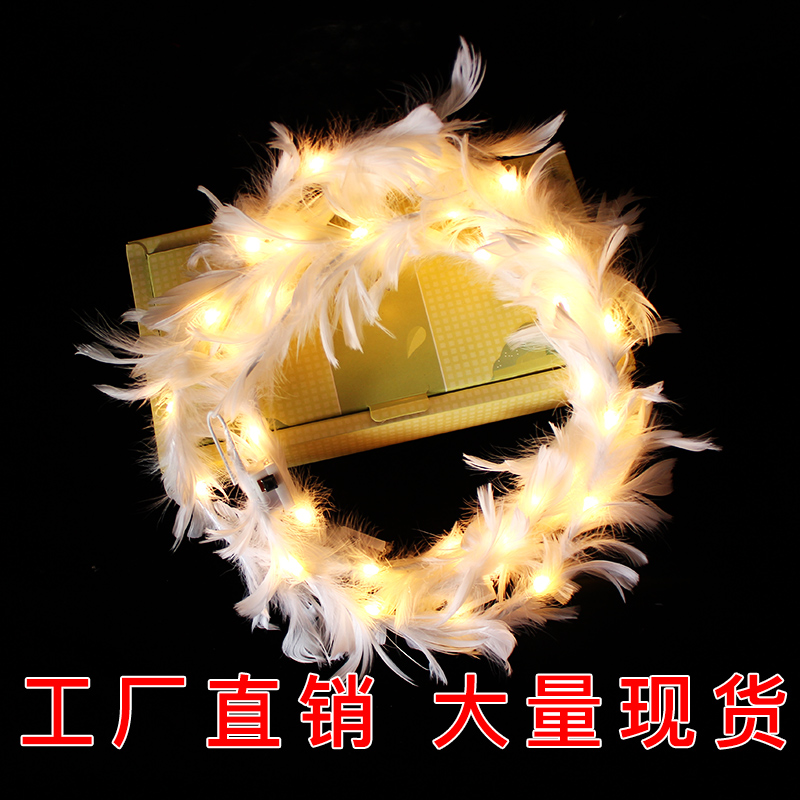 New Feather Deer Antlers Luminous Flower Ring Hair Stirrup Pushback Small Gift Christmas Shine Feather Rabbit Ears Manufacturer Direct