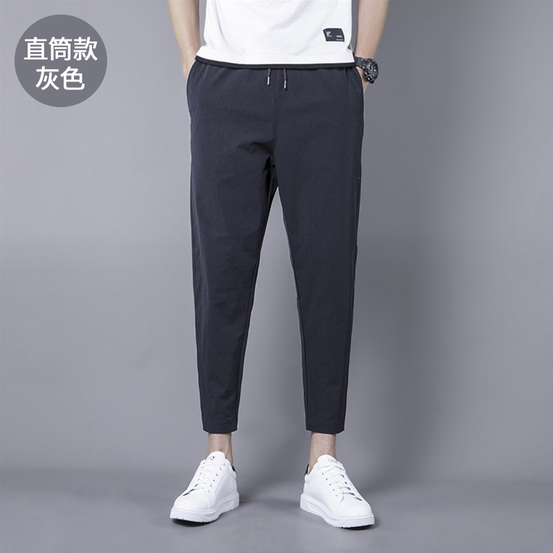 Ice silk black pants men's spring and autumn and summer trend sports wild nine-point loose straight plus size casual pants