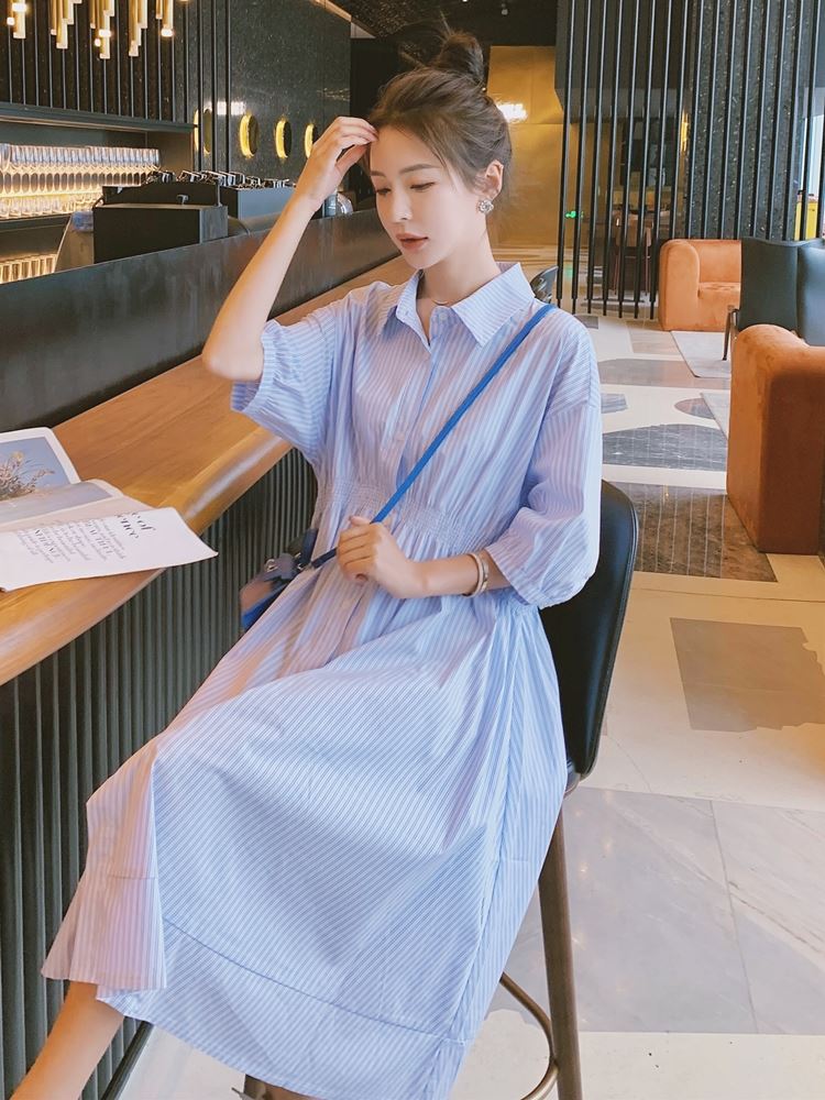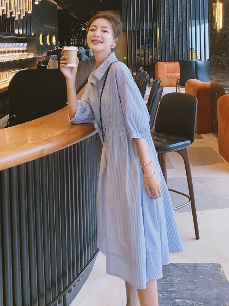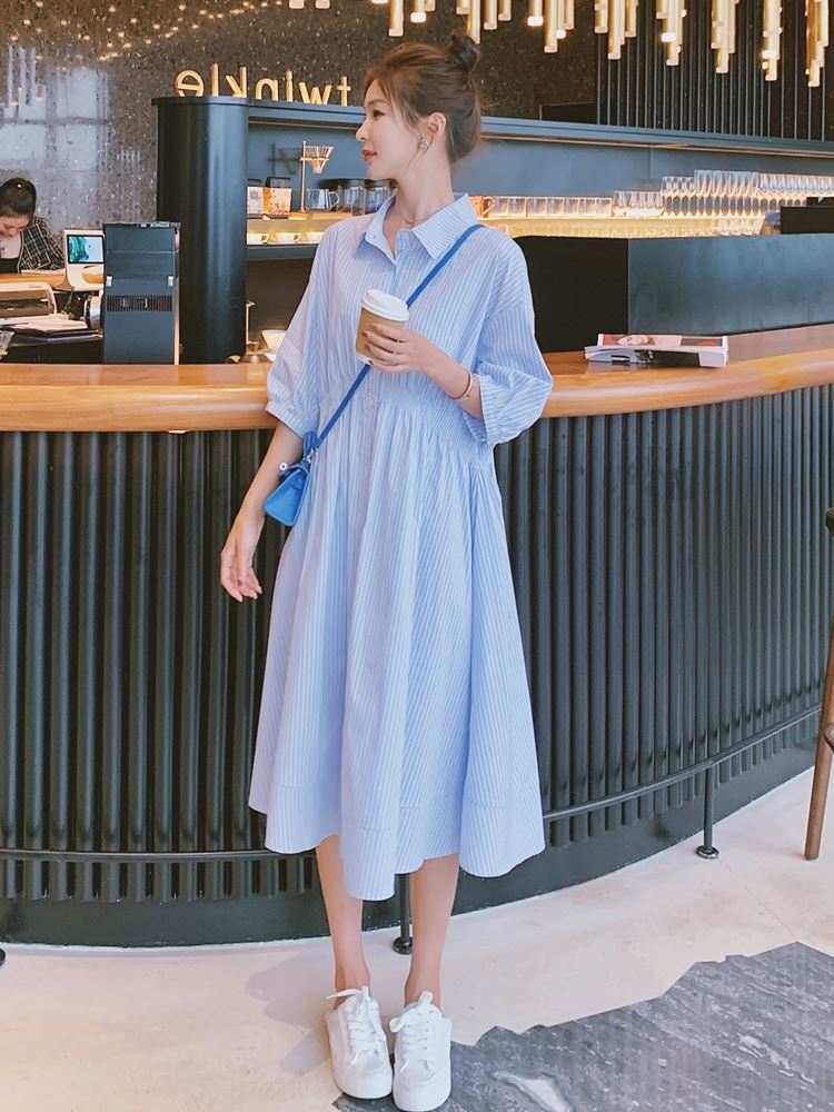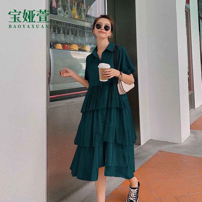 2021 Pregnant women's summer clothes fashion Korean version of the third trimester go out mesh stitching shirt breastfeeding dress trendy hot mom