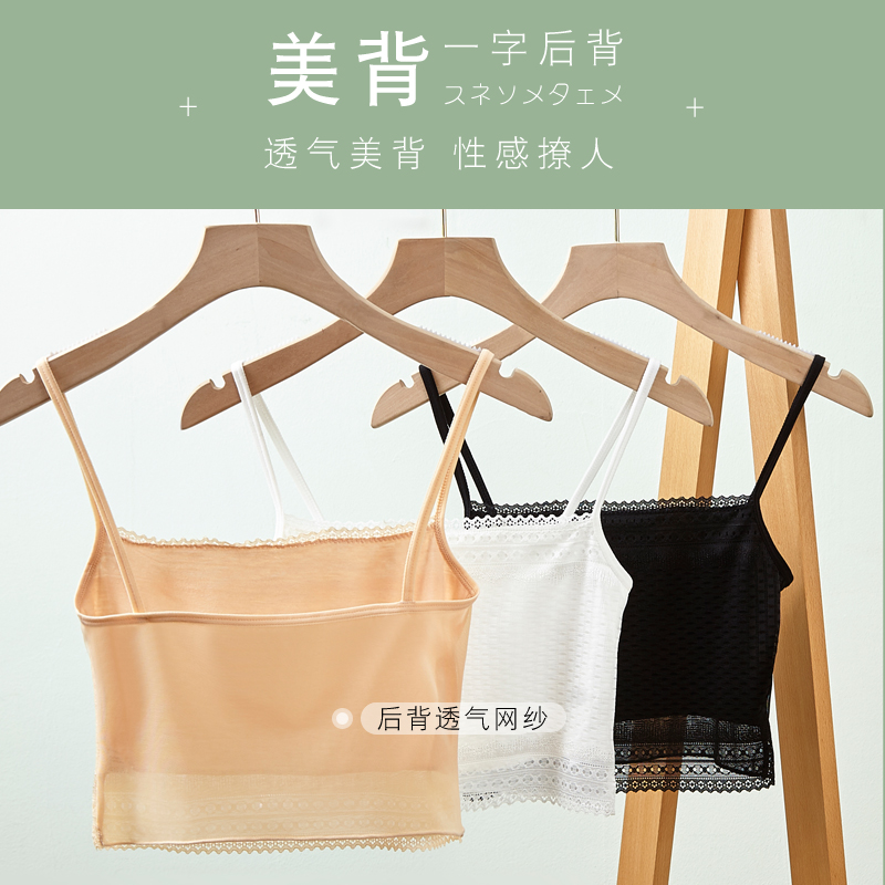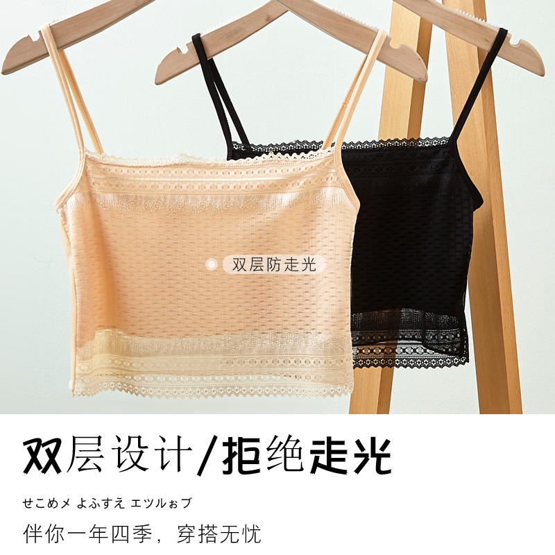 Beauty back lace inside lap black anti-walking light small harnesses vest female inner hitch bottom short wrap Wrap Chest Underwear Smears summer-Taobao