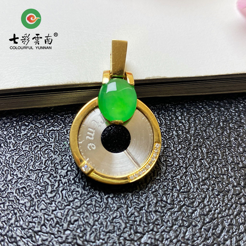 Colorful Yunnan Burma A goods natural jadeite belt certificate 18K gold inlaid ice jadeite jadeite pendant