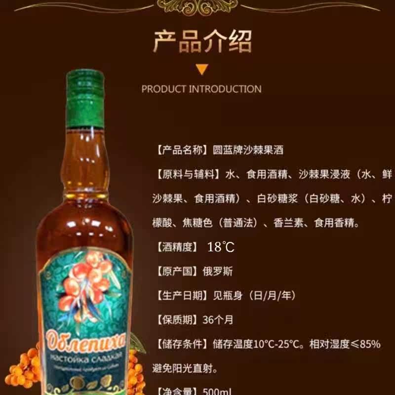 Fruity Vodka Russia Imports Wild Sea Buckthorn Fruits Health Lady Low 20-degree Chicken Tails Sweet Fruit Wine