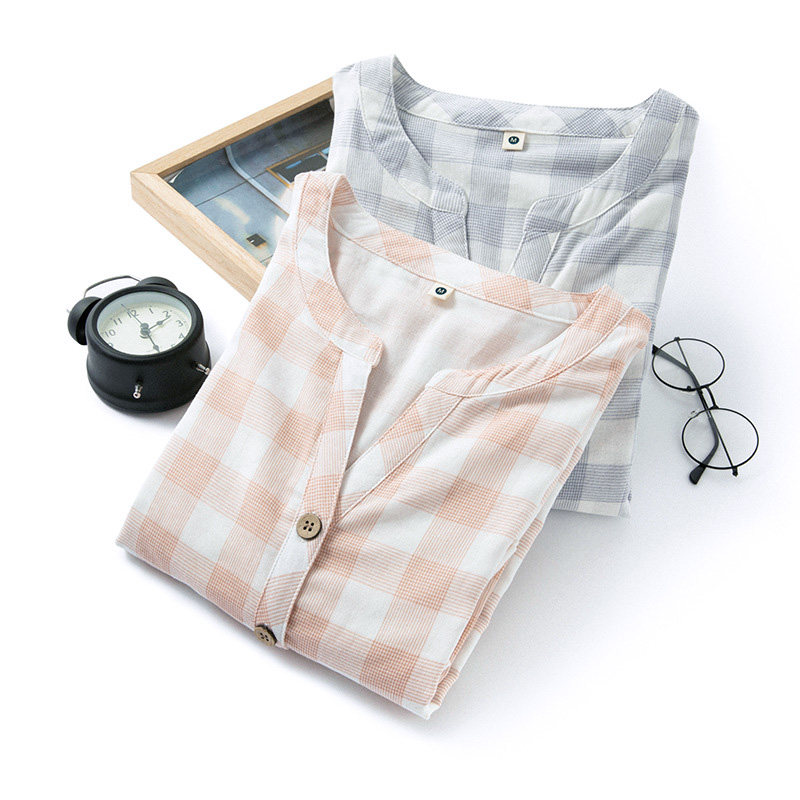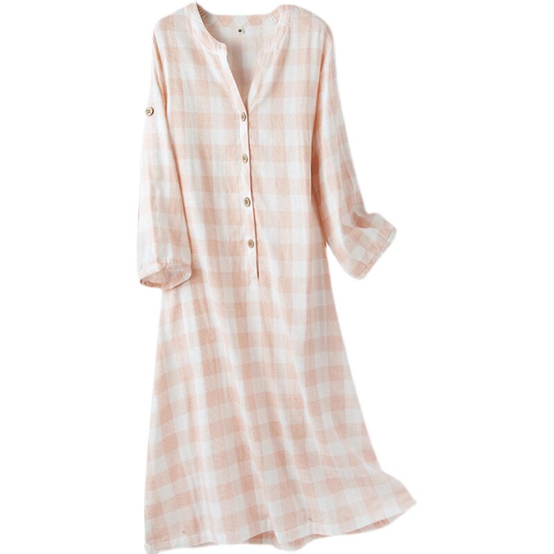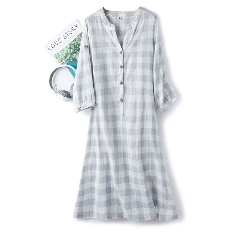 Summer slim Lady pure cotton double layer gauze 7 Sleeves Sleeping Skirt Minimalist Large V collar Semi-open cardiovert skirt