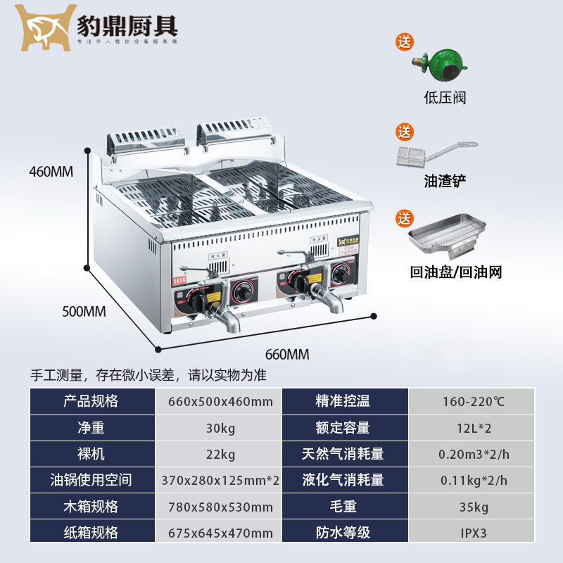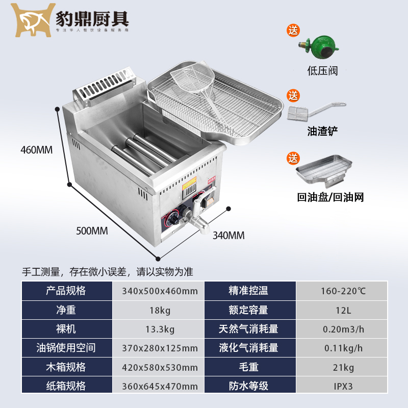 Leopard Ding commercial desktop 12-liter single and double-cylinder gas fryer Zhengxin chicken chop fryer constant temperature gas fryer