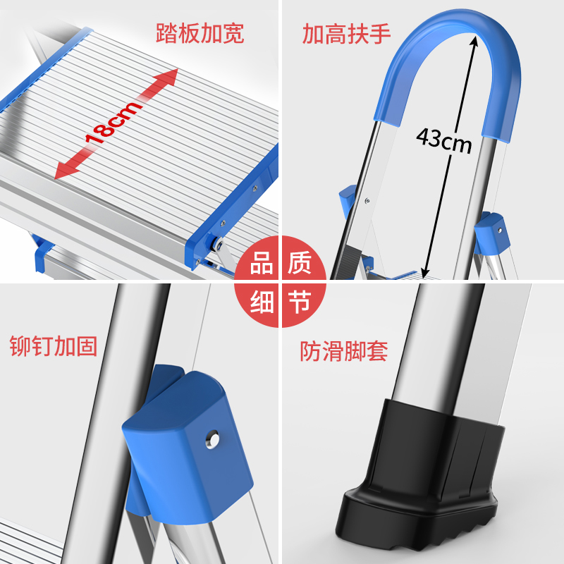 (Full pedal 18CM) Turkish blue thickened stainless steel four-step ladder