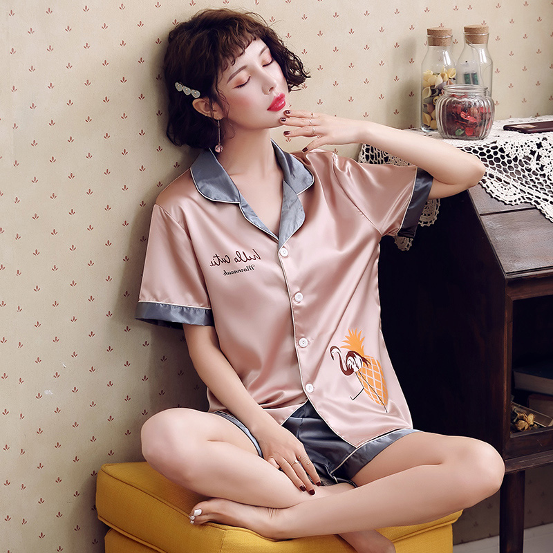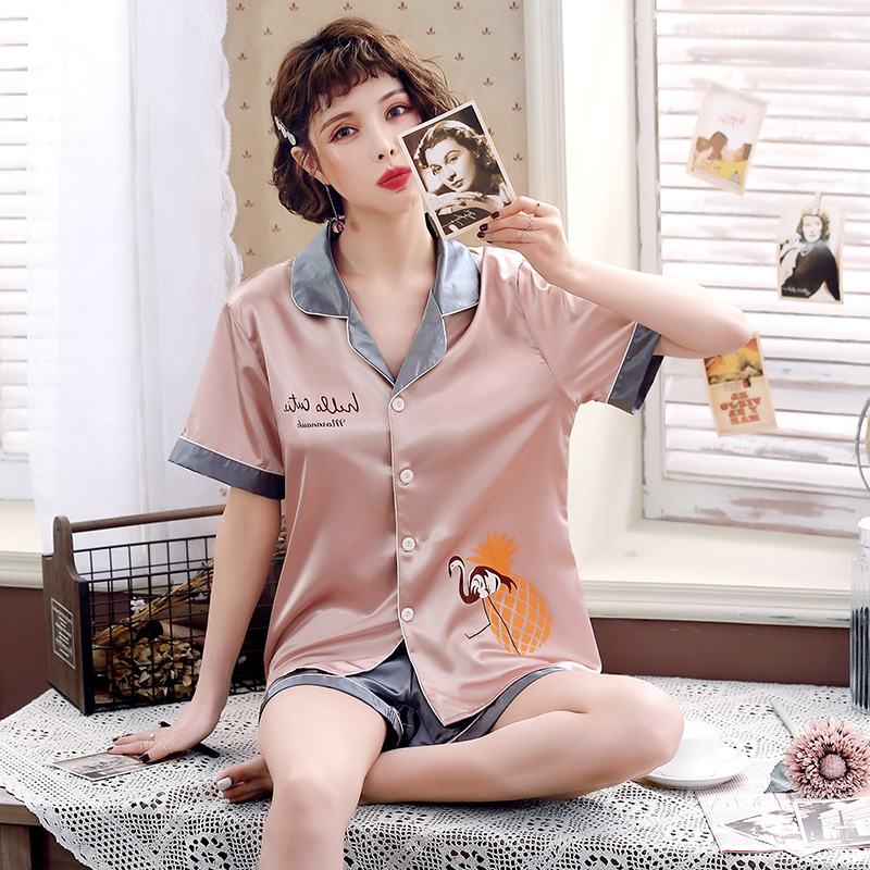 Ice silk nightdress 2023 new summer brand thin short sleeve two sets in wind simulation silk home suit