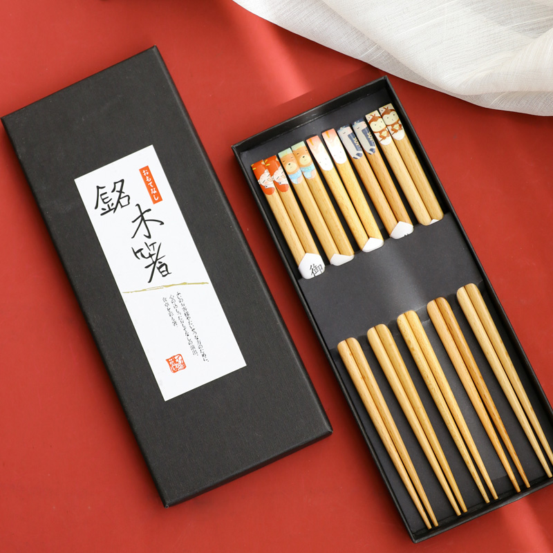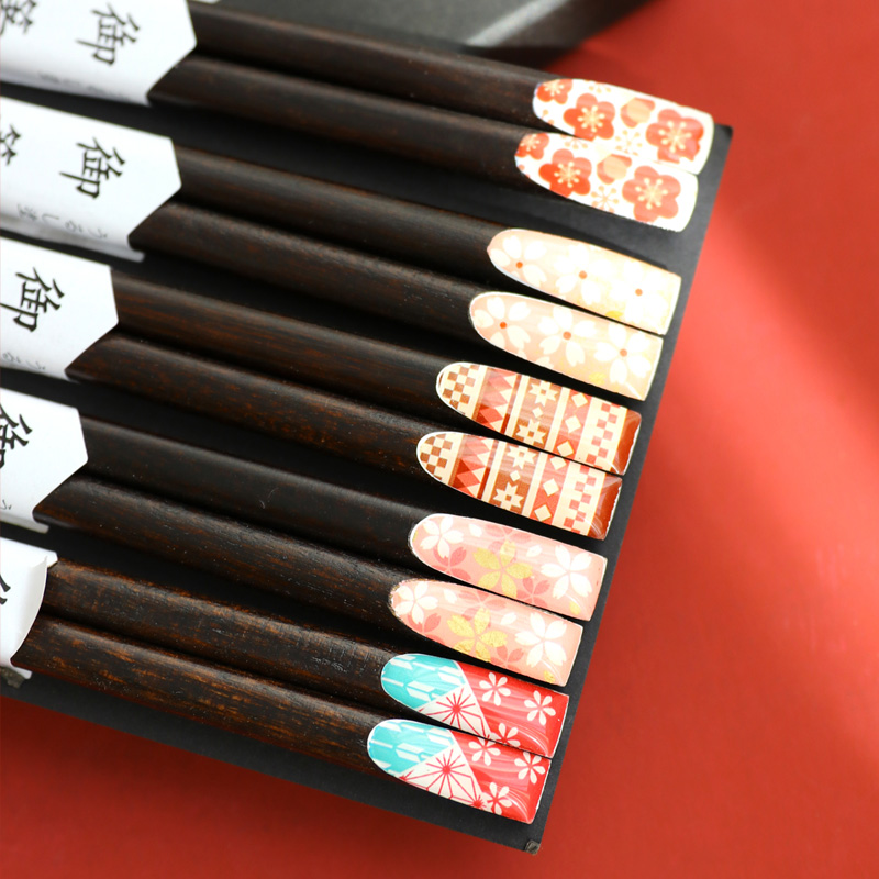 Happy-wood Youtasers Day style and wind chopsticks Thermal transfer nail wood chopsticks Practical gift Custard Chopsticks Wood Cutlery Commercial