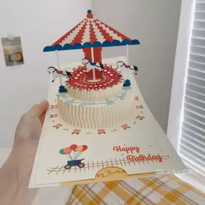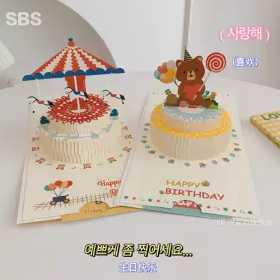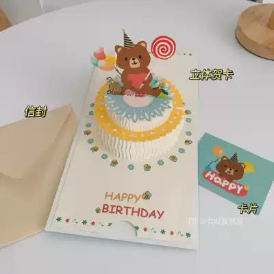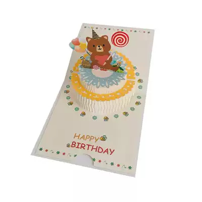 Girl heart screening room 3D three-dimensional cute bear birthday cake cartoon card creative graduation blessing card