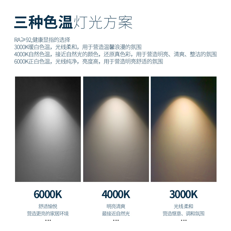 White 30W neutral light 4000k Black 30W warm 3000k Black 15W white light 6000k Black 30W white light 6000k Black 10W neutral