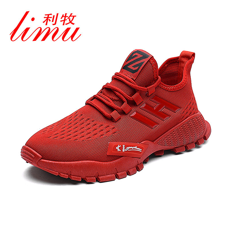 Men's shoes 2021 new autumn trend flying woven sports shoes all-match casual youth red zodiac year of the ox trendy shoes