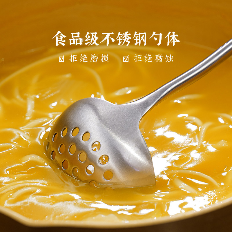 (Old Rice Bone) 304 Stainless Steel Home Soup Spoon Leak Spoon Kit Kitchenware Hot Pot Tablespoon Long Handle Spoon