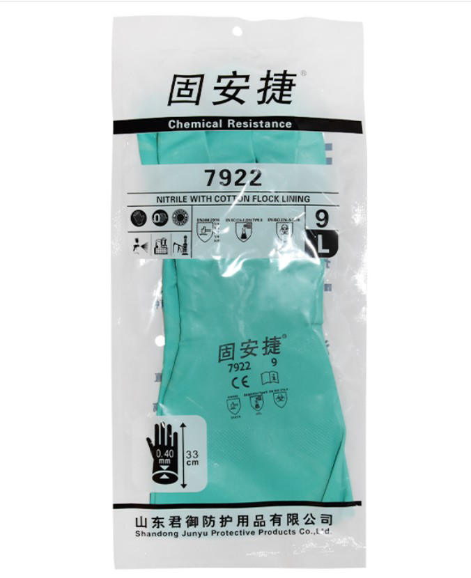 Gu'anjie 7922 nitrile rubber anti-chemical gloves fully coated 33cm long thickness 0 38 flocking lining