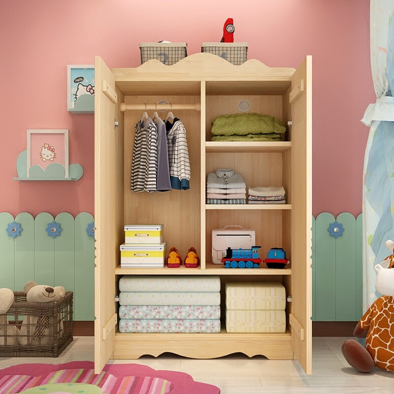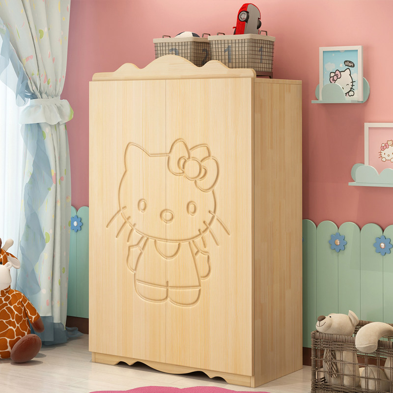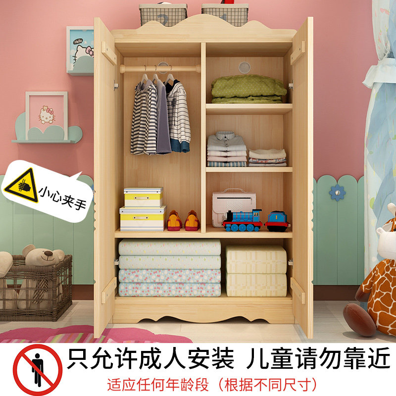 Children's wardrobe solid wood double door wardrobe boy wardrobe girl cartoon storage cabinet European style baby bedroom storage cabinet