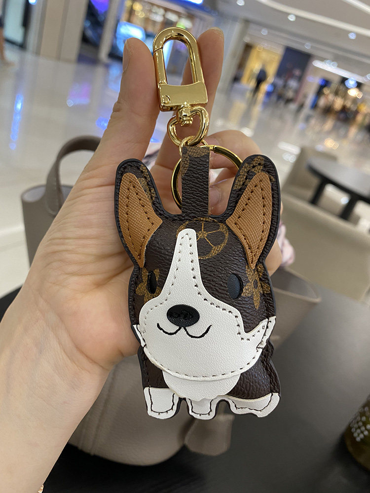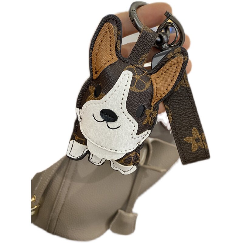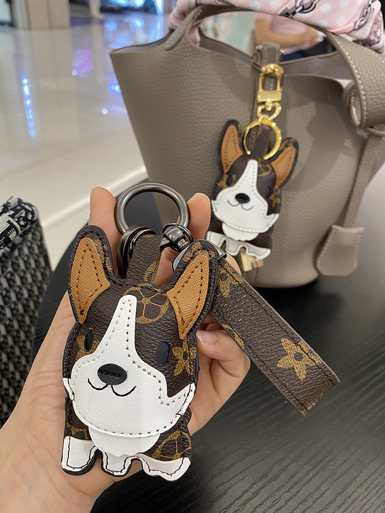 LVGEDETE Corgi Puppy Car Keychain Pendant Presbyopia Doll Female Key Chain Bag Backpack Ornament
