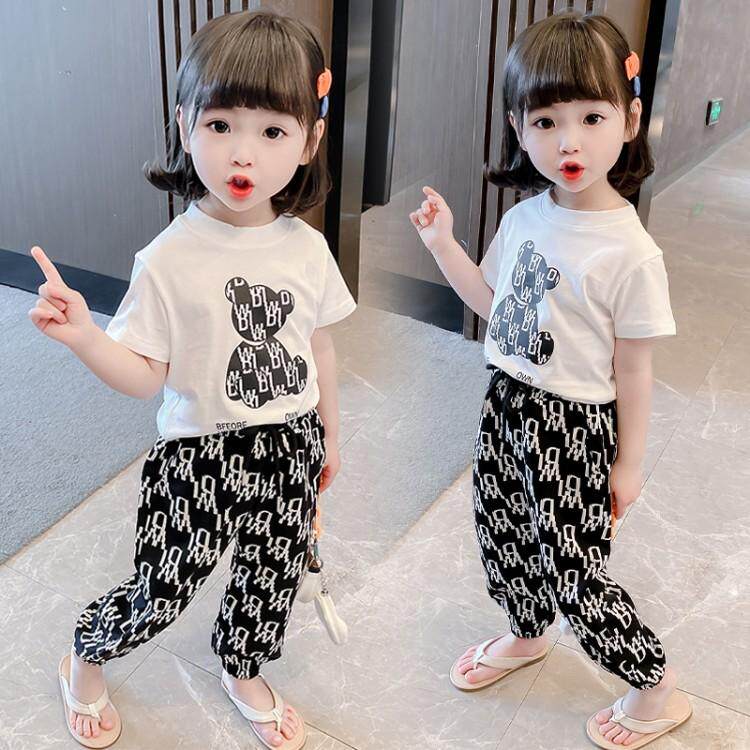 Girls Summer Package Children's Pure Cotton Short Sleeve T - shirt pants Summer Fashion Baby Kit