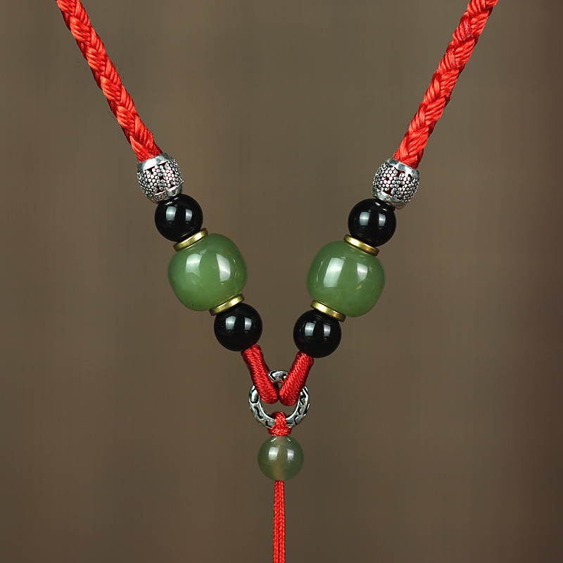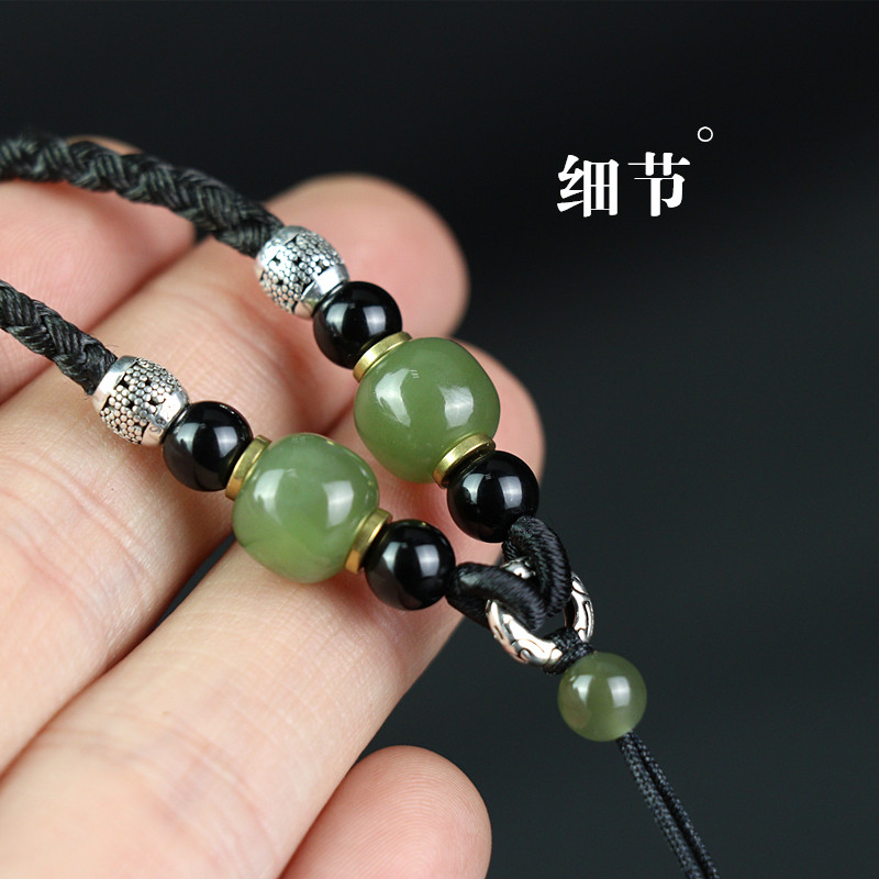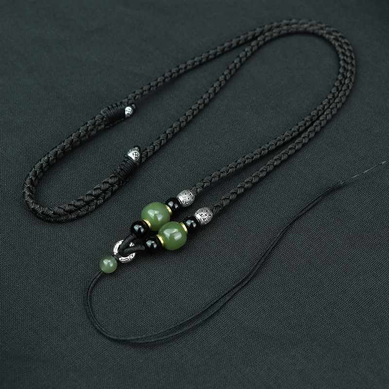 Jade Apple Green Pendant Hanging Rope Handmade 12 Strands Braided Rope Jasper Hanging Rope Adjustable Thick Rope High Goods Rope