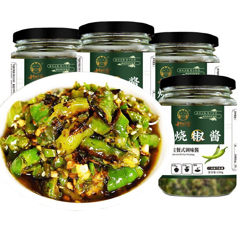 Sichuan Child Barbecue Pepper 6 bottles Sichuan farmhouse Homemade Charcoal Burning Tiger Leather Green Chili Pepper Oil Mix Noodles with Noodles Sauce