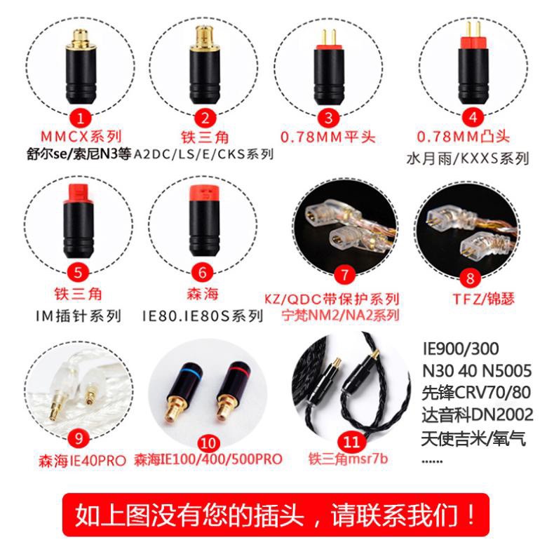 MMCX Series Shure Dayinko Sony et al. Sony N3AP JVC MMCX Non-Ear Series Iron Triangle IM50 IM70 IM02 IM01 IM03 Series Senkai IE80S IE80 IE8I Series Iron Triangle LS50 LS70 A2DC Series 2PIN0.78 Double Needle Bare 0.78 Protective Case Xingge KZ CCA TRN Series 0.78 Convex Head Water Moon Rain kxxs Jinsexiang also TFZ Series Senkai IE40PRO Series IE500PRO IE400PRO series Other headphone models Please contact customer service